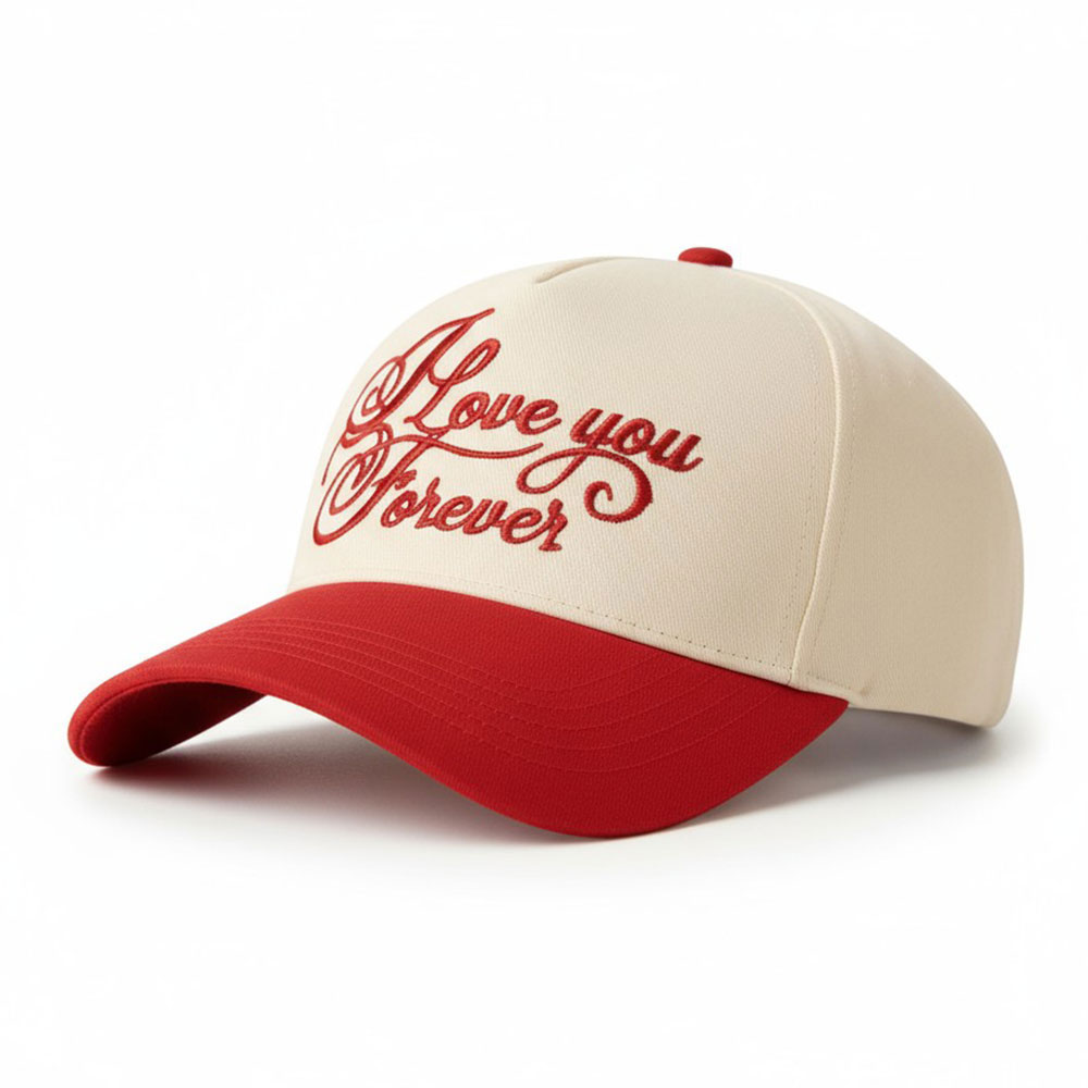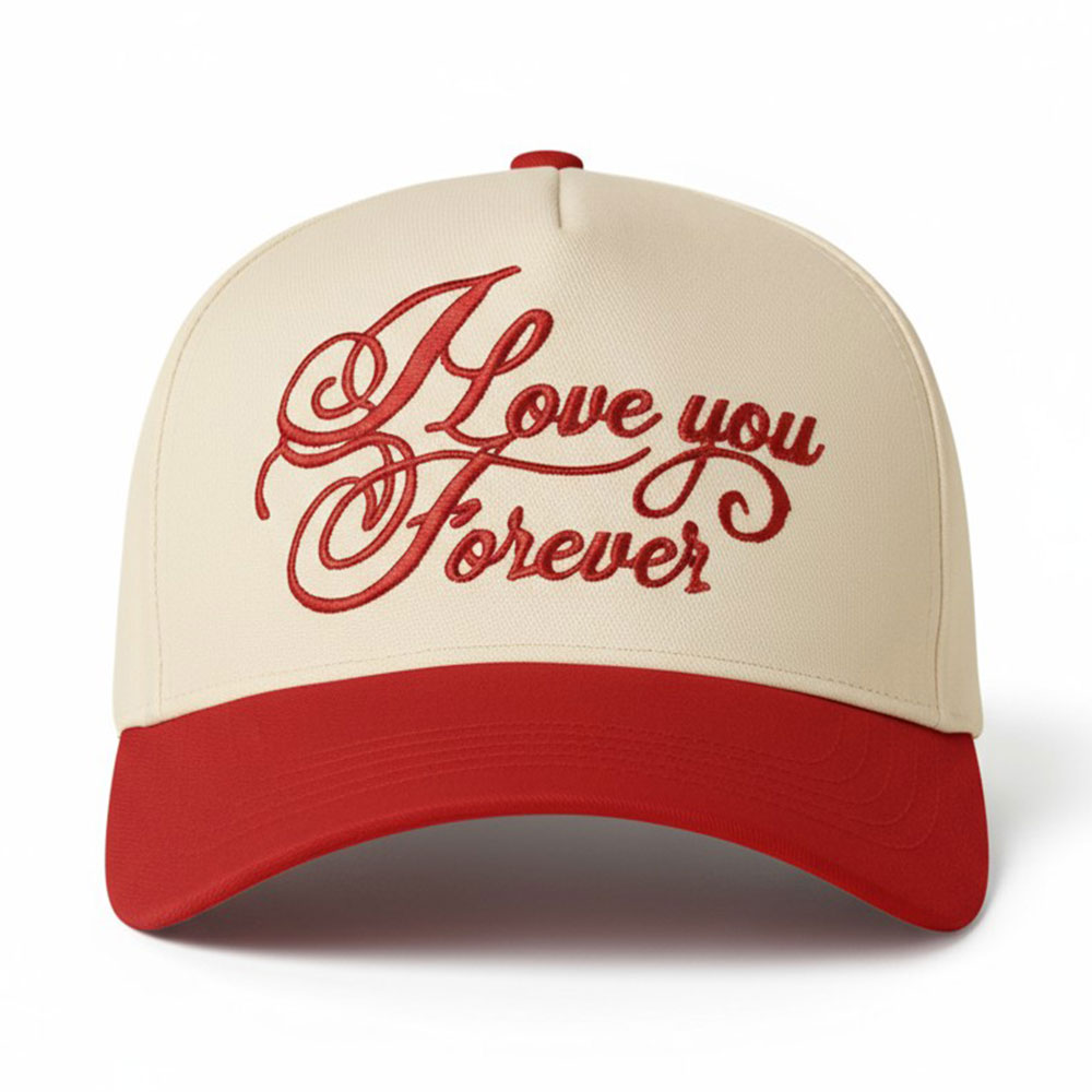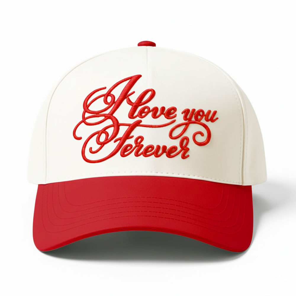 Details • Size : One Size Fits All - Adjustable Strap Makes Fit Comfortable • 5 Panel Canvas Cap : Adjustable Buckle Closure, Relaxed Fit and Pre-Curved Visor • Material : 100% Cotton • Show your love in style with this “I Love You Forever” baseball cap featuring elegant embroidered lettering that makes a bold, heartfelt statement. Perfect for everyday wear, gifting, or showing affection on special occasions. A meaningful and stylish accessory that adds personality to casual looks while celebrating love in a unique and expressive way.
