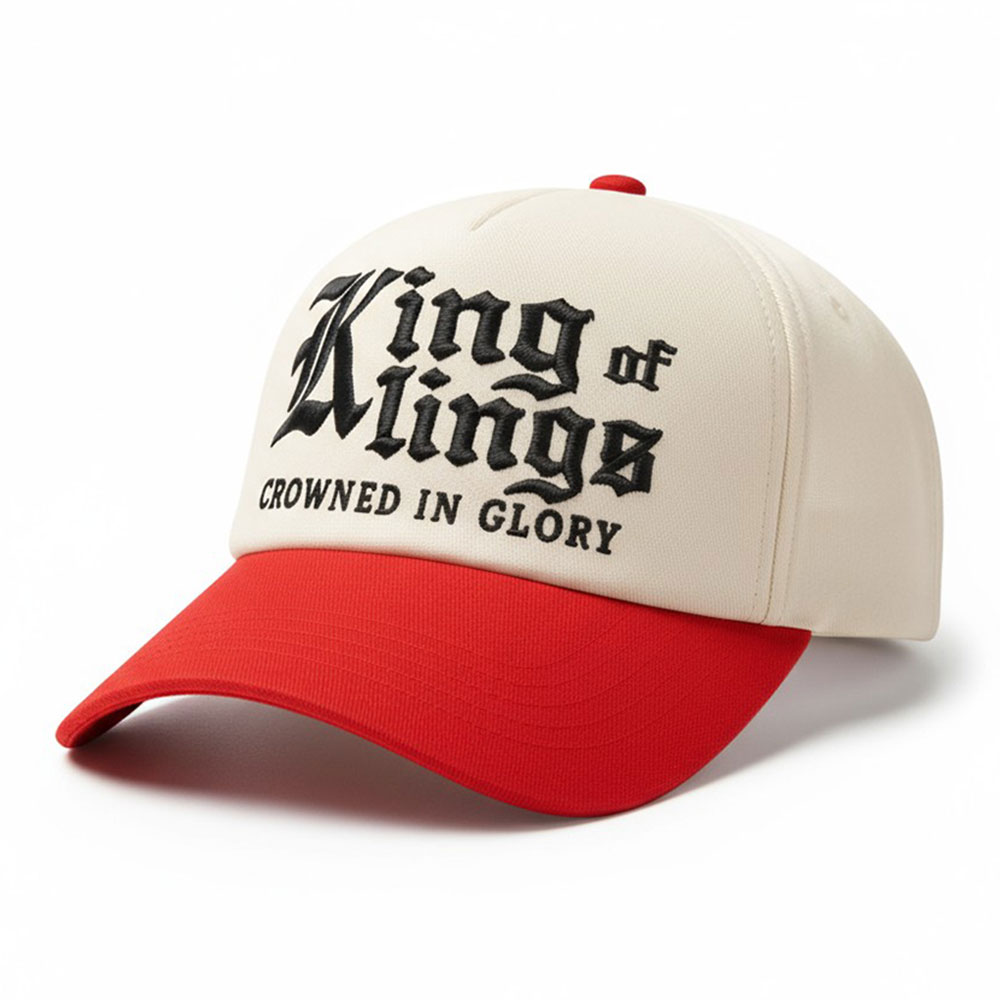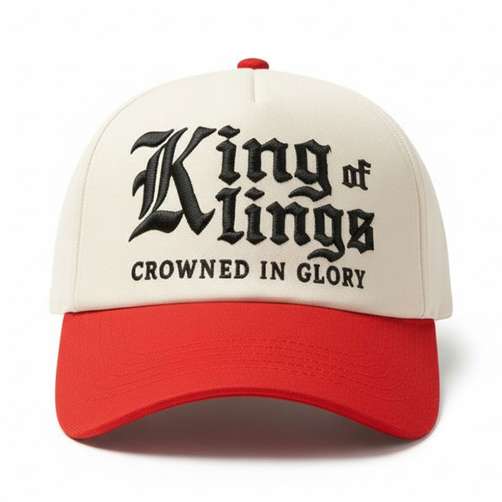 Details • Size : One Size Fits All - Adjustable Strap Makes Fit Comfortable • 5 Panel Canvas Cap : Adjustable Buckle Closure, Relaxed Fit and Pre-Curved Visor • Material : 100% Cotton • Show bold confidence and uplifting style with this “King of Kings” crowned-in-glory baseball cap, designed to make a strong statement wherever you go. Perfect for casual wear, events, or meaningful gifting, it adds inspirational personality to any outfit while offering everyday comfort and a standout embroidered message.