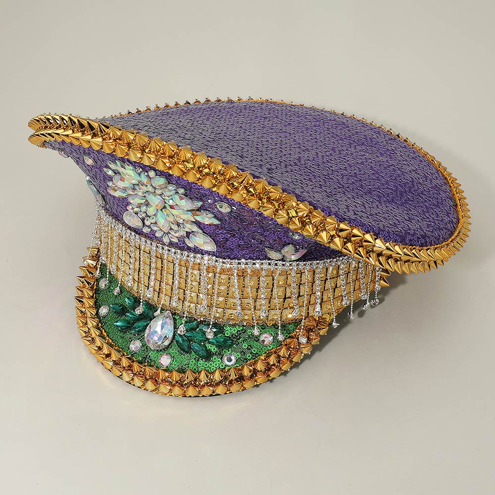 Mardi Gras Marquise Stone Cluster Embellished Rhinestone Sequin Captain Hat