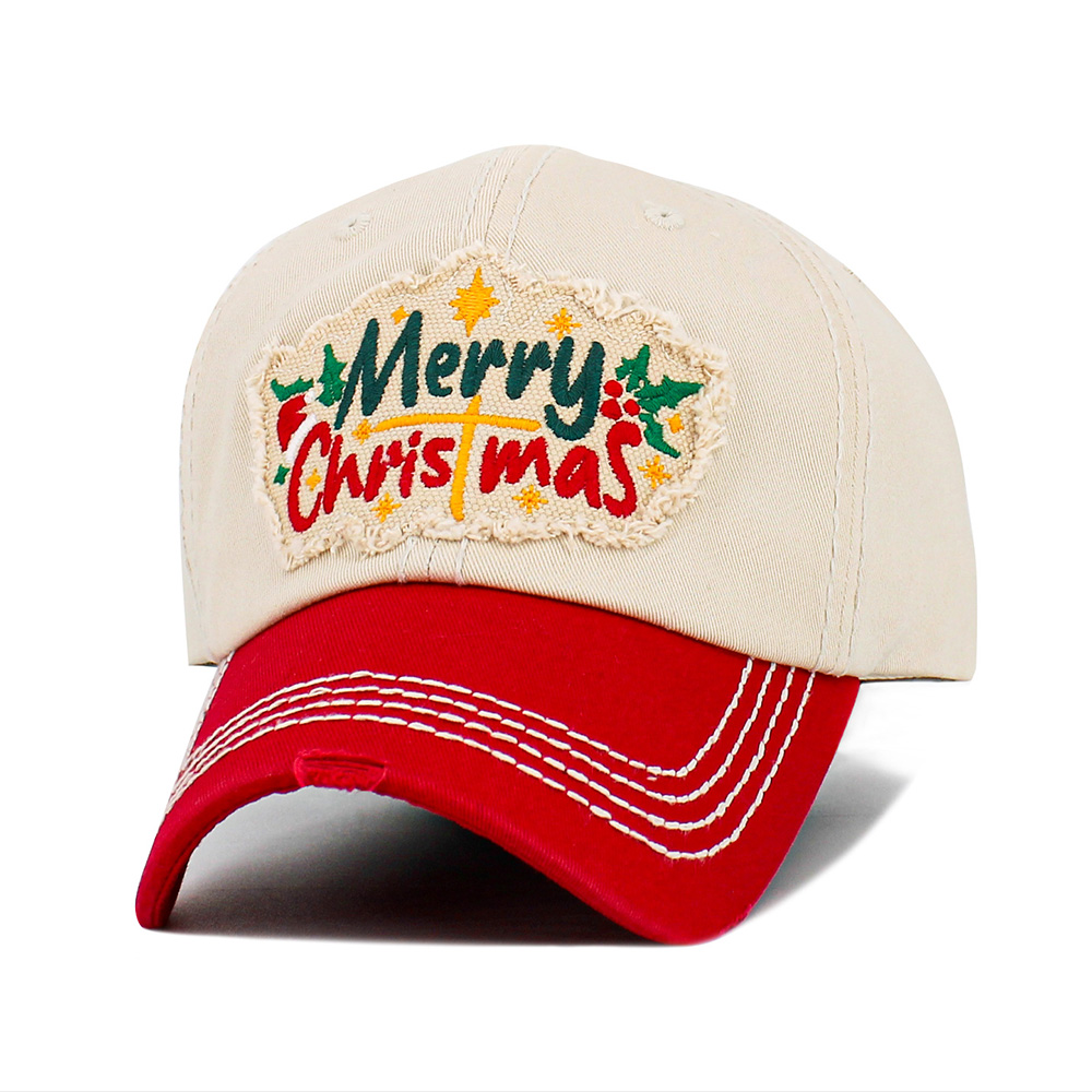 • Festive baseball cap featuring a bright “Merry Christmas” embroidered patch with a distressed edge for a cheerful holiday look. Ideal for casual wear or seasonal gatherings, this adjustable cap adds a fun and spirited touch to your winter wardrobe and festive celebrations.