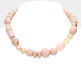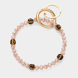 Abalone Flamingo Tropical Leaf Charm Beaded Stretch Toggle Bracelet