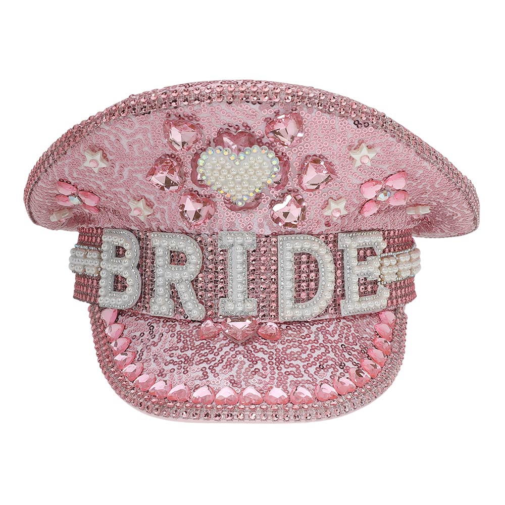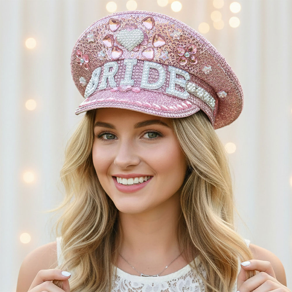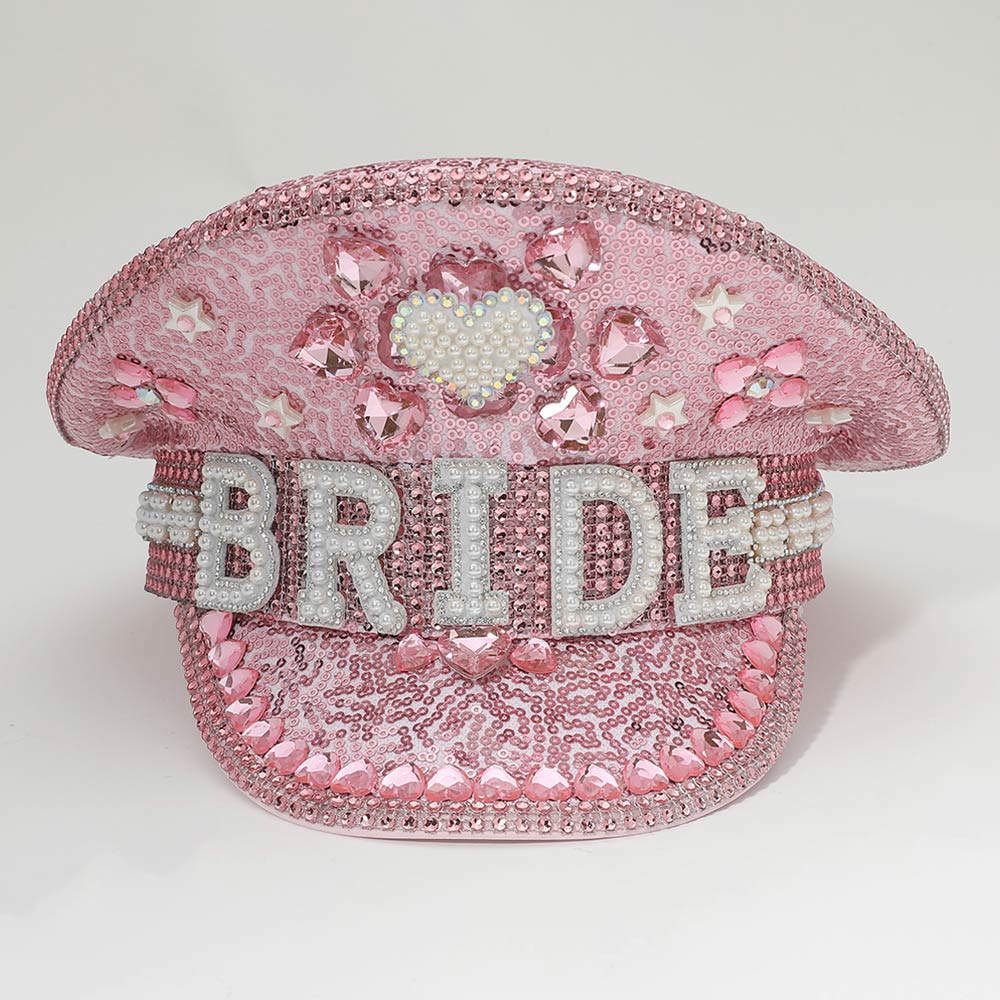 Pearl BRIDE Lettering Rhinestone Heart Embellished Sequin Bridal Captain Hat