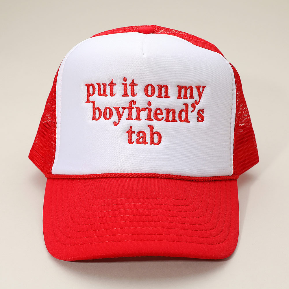 PUT IT ON MY BOYFRIENDS TAB Embroidered Mesh Back Trucker Cap