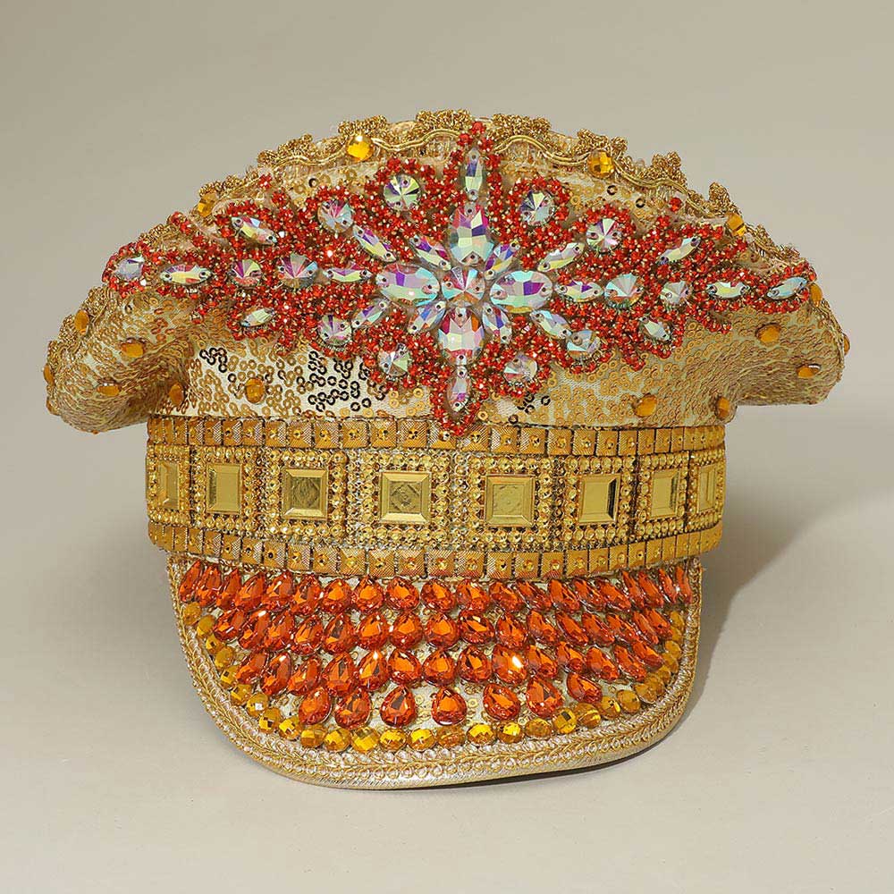 • Make a bold fashion statement with this ornate embellished cap featuring intricate detailing and high-impact sparkle. Designed to elevate party outfits, stage looks, themed events, festivals, and photoshoots, it delivers standout style for confident, trend-forward accessorizing.