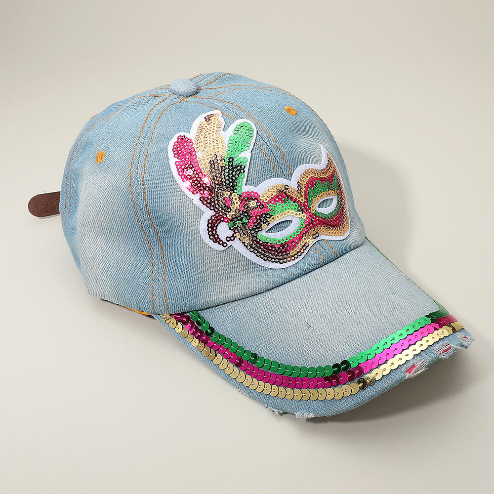Sequin Mardi Gras Mask Patch Baseball Cap