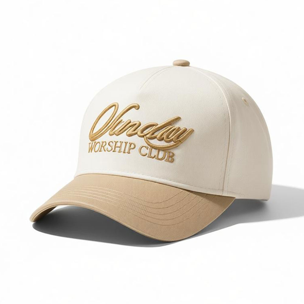 SUNDAY WORSHIP CLUB Embroidered Five Panel Canvas Baseball Cap