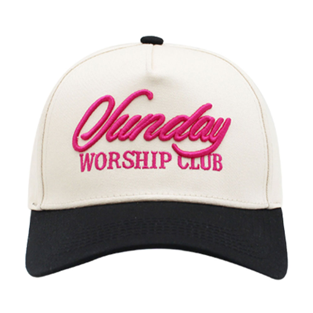 SUNDAY WORSHIP CLUB Embroidered Five Panel Canvas Baseball Cap