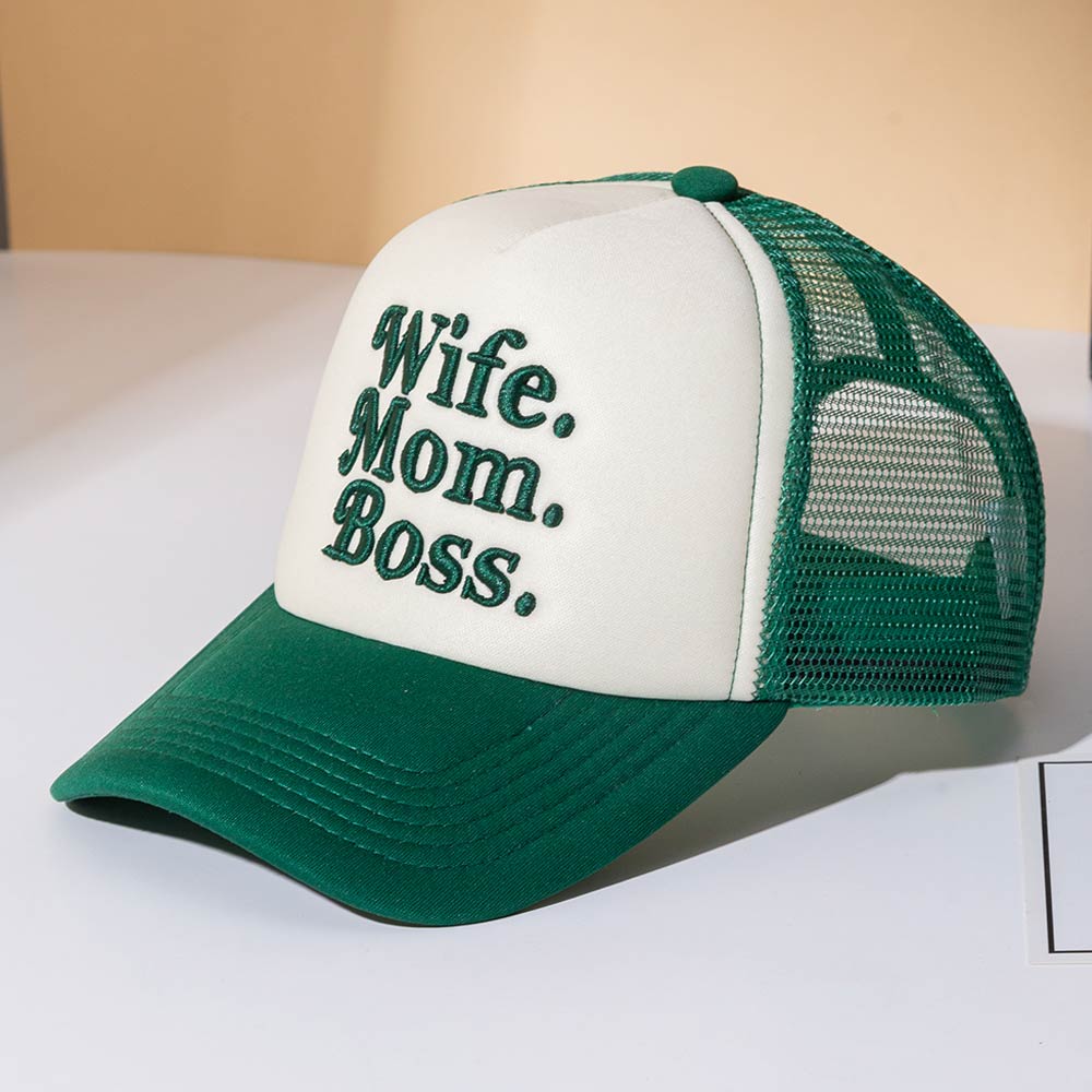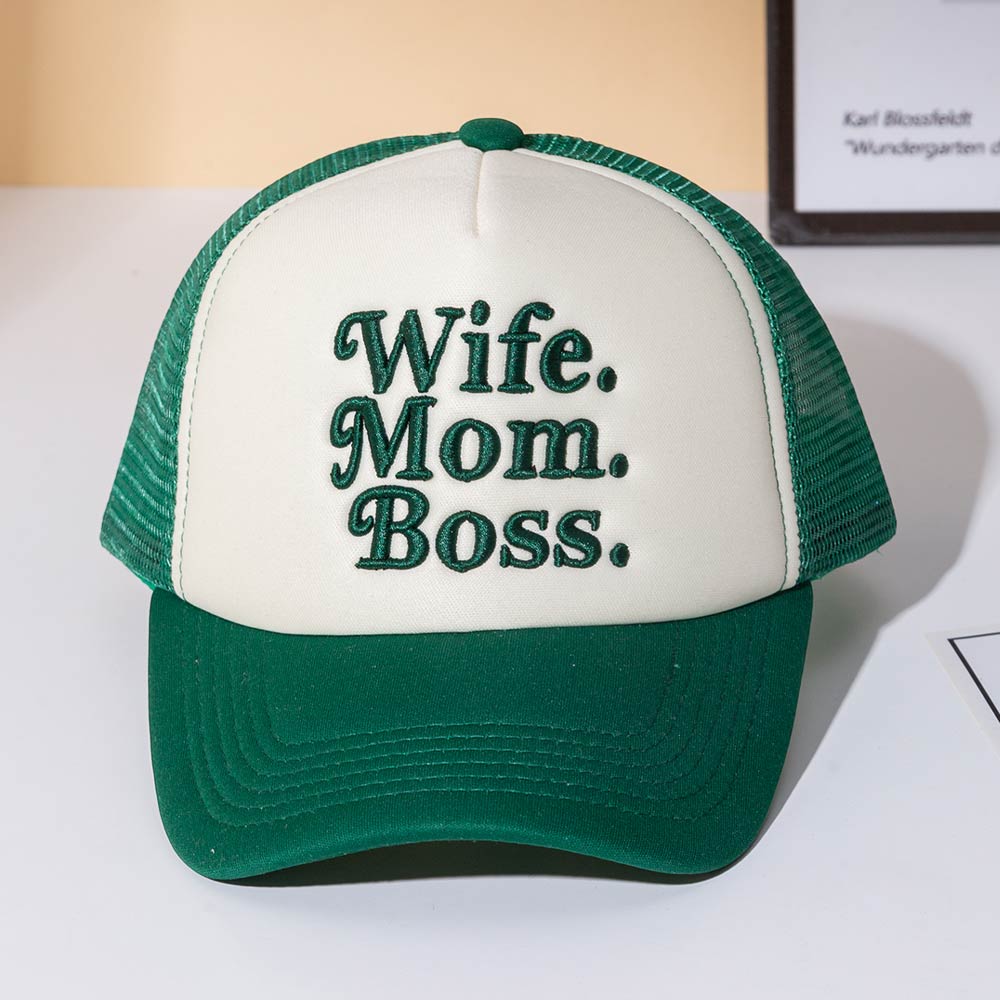WIFE MOM BOSS Message Embroidered Trucker Hat