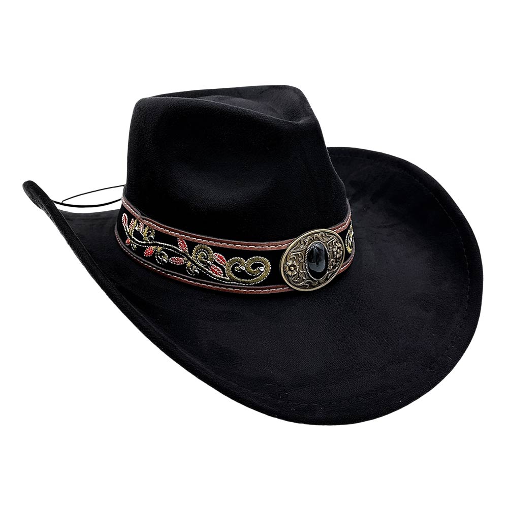 Boho Concho Buckle Embroidered Band Accent Western Cowboy Hat