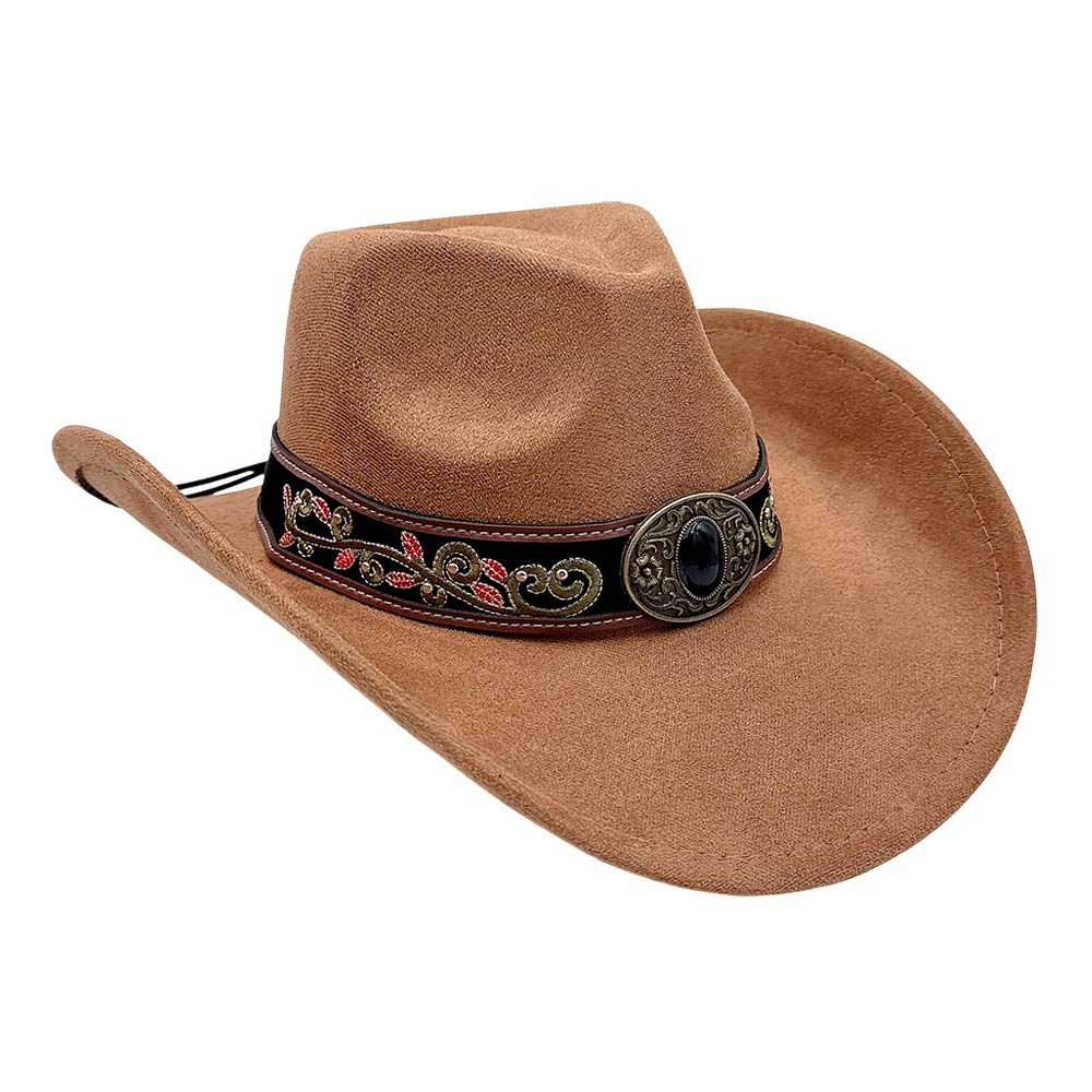 Boho Concho Buckle Embroidered Band Accent Western Cowboy Hat