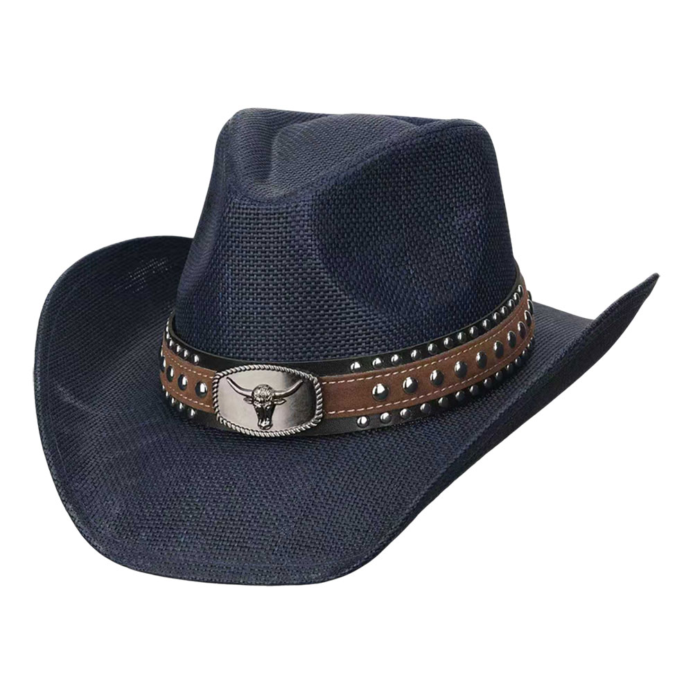 • Bold western-inspired cowboy hat featuring a structured silhouette and a stud-accented band with oval steer head buckle detail. Designed to elevate festival looks, themed collections, and statement outfits, this hat adds rugged character and standout style to any accessory assortment.