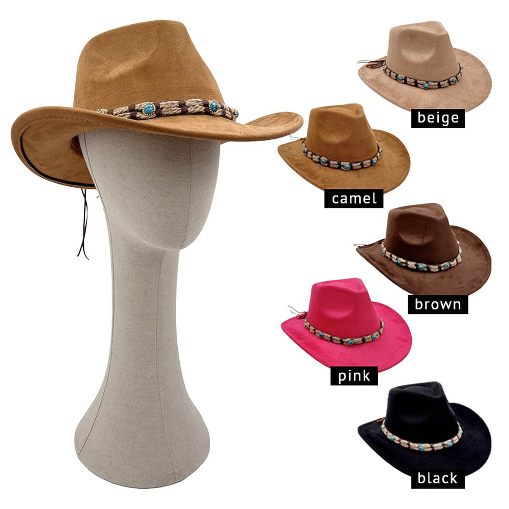 Boho Stone Accent Braided Band Western Cowboy Hat