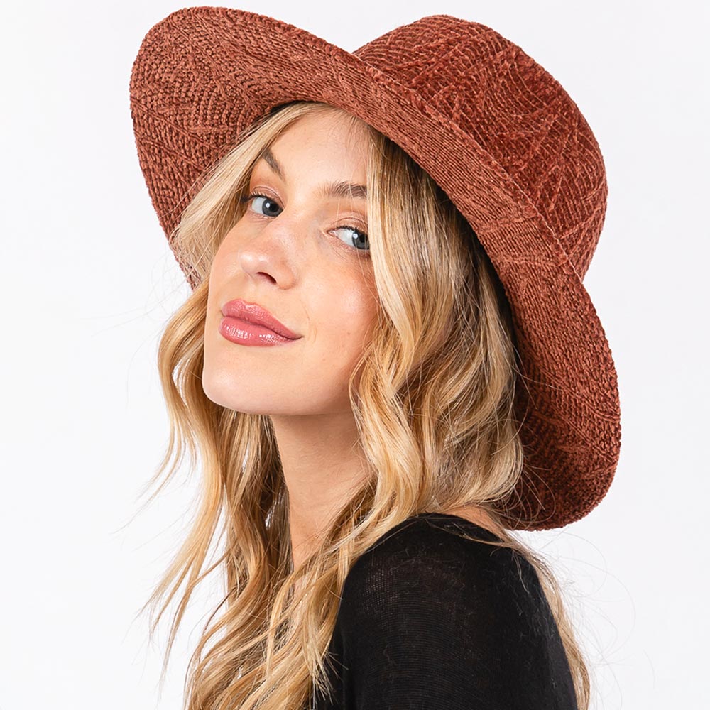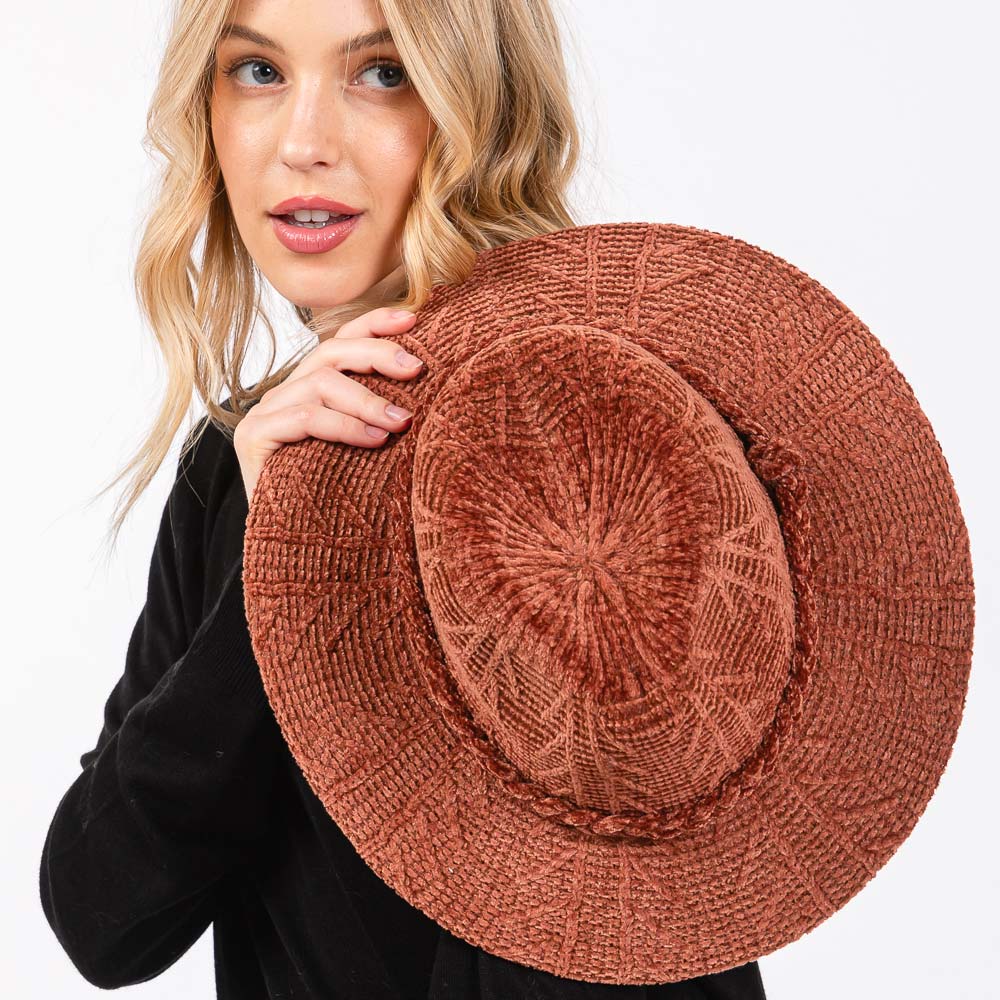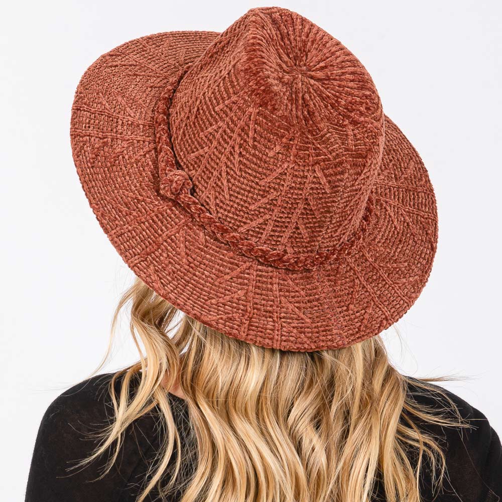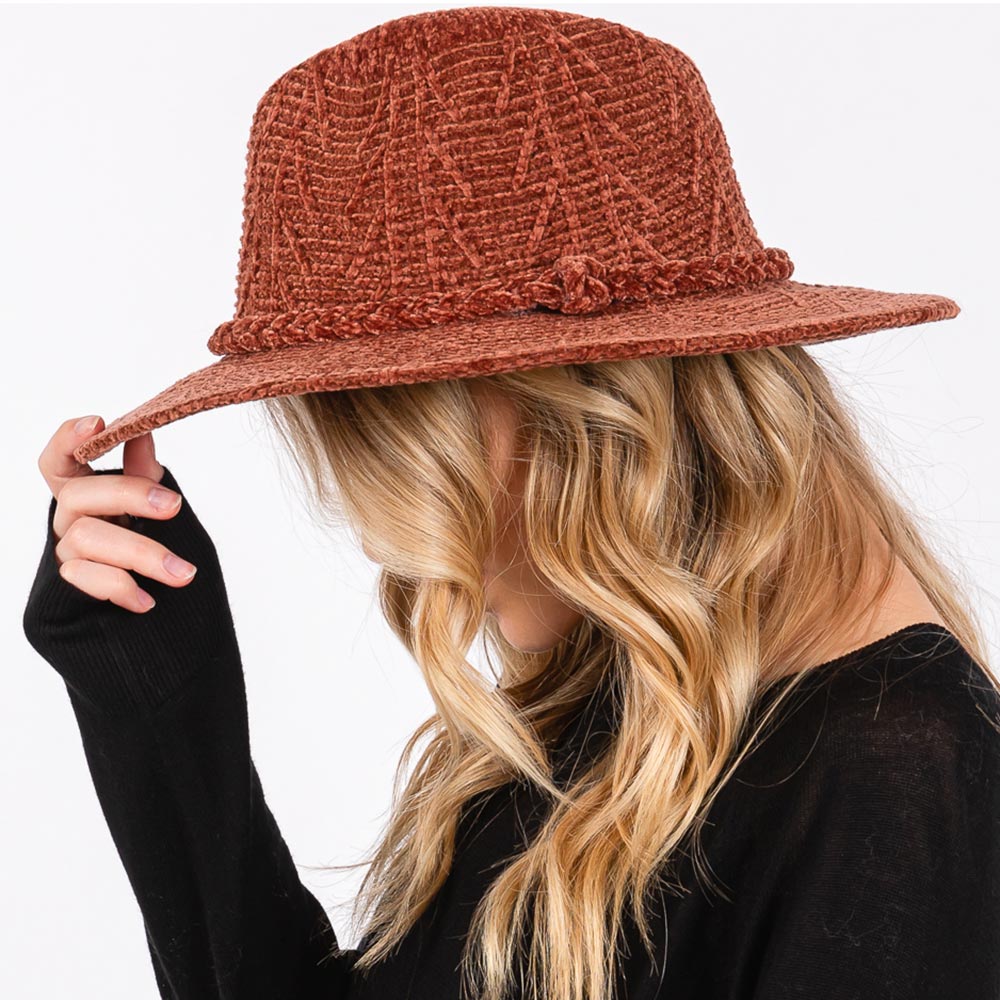 Chenille Pattern Fedora Hat with Braided Band