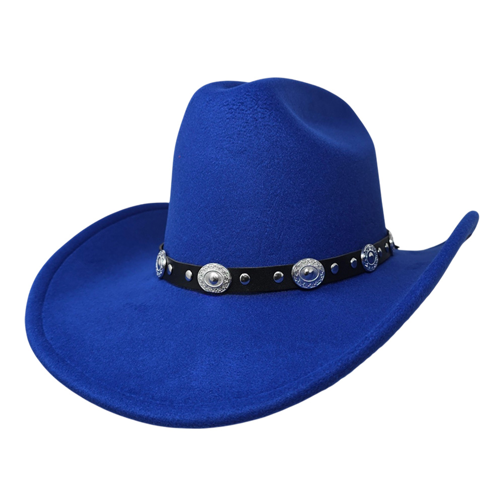 • Classic western cowboy hat featuring a wide brim and a stylish decorative concho band. Perfect for country events, rodeos, festivals, or casual wear, this versatile hat combines traditional charm with bold western flair.