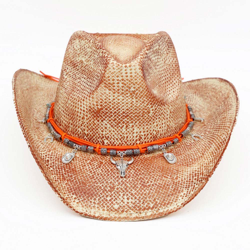 Details • Size : One Size • Material : 100% Paper • This western cowboy hat showcases a bold patterned finish with a detailed charm band for a rugged yet stylish look. Designed for country concerts, rodeos, festivals, western boutiques, and themed events, it adds statement appeal while offering comfortable wear and a classic western silhouette. • Handmade