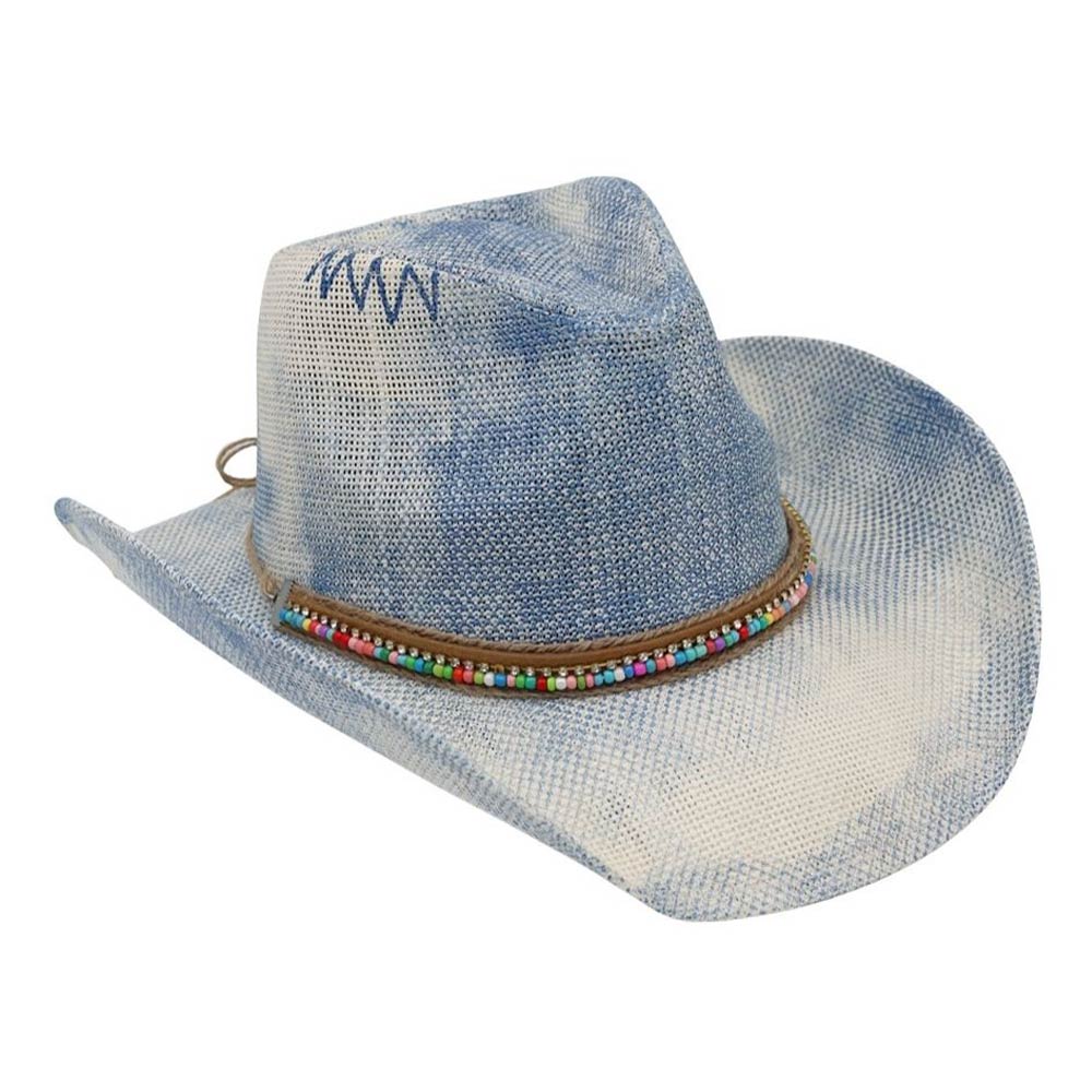 Details • Size : One Size • Material : 100% Paper • Statement western cowboy hat designed with a structured crown and curved brim, accented by a decorative beaded band for a bold, eye-catching finish. Ideal for festivals, concerts, travel, and everyday styling, this versatile hat adds personality, comfort, and western flair to any outfit.