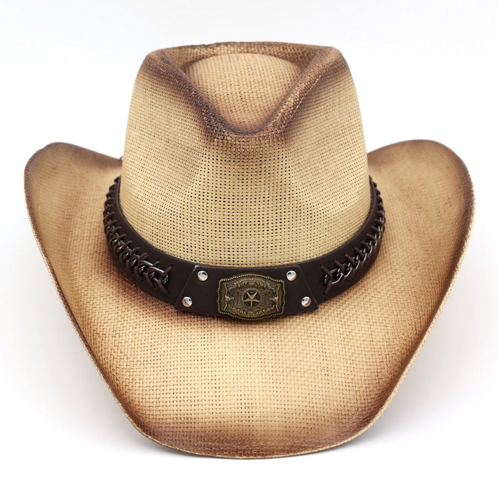 Rustic Star Concho Belt Accent Faux Leather Band Western Cowboy Hat