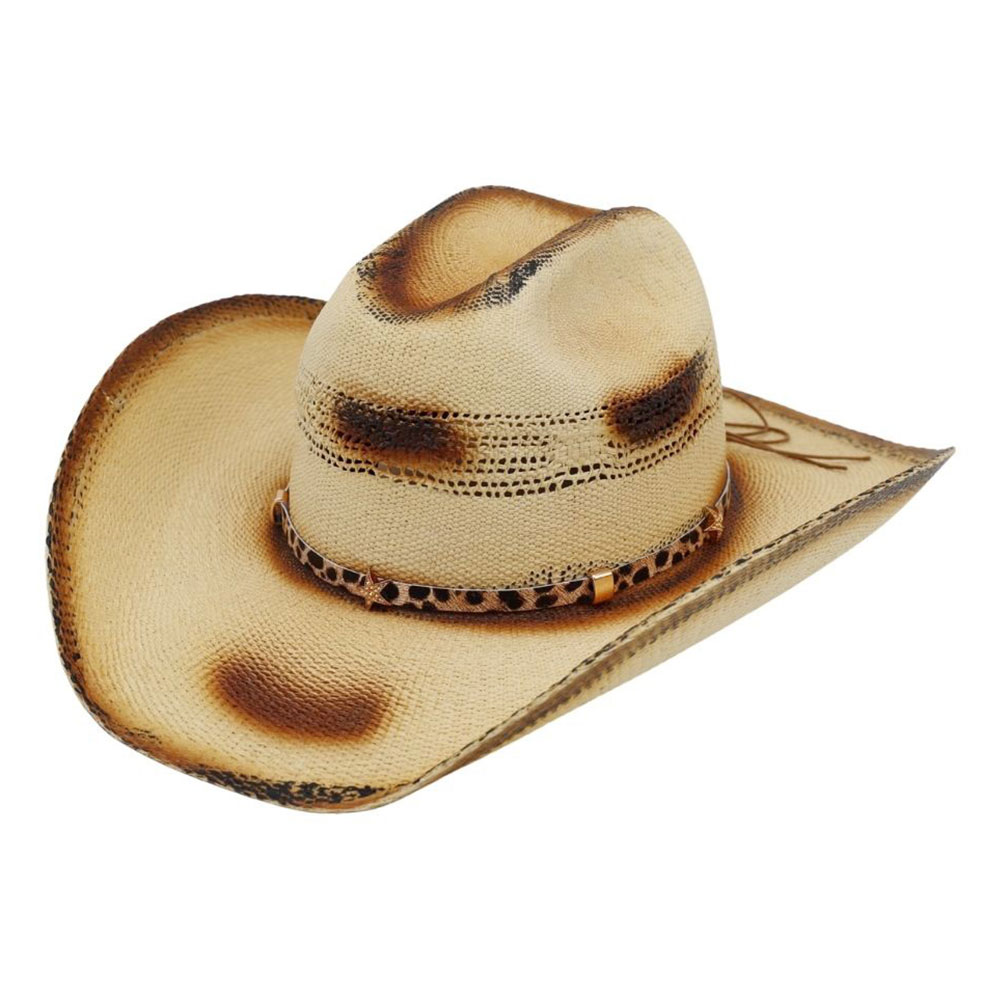 Star Accent Leopard Pattern Faux Leather Band Distressed Two Tone Western Cowboy Hat