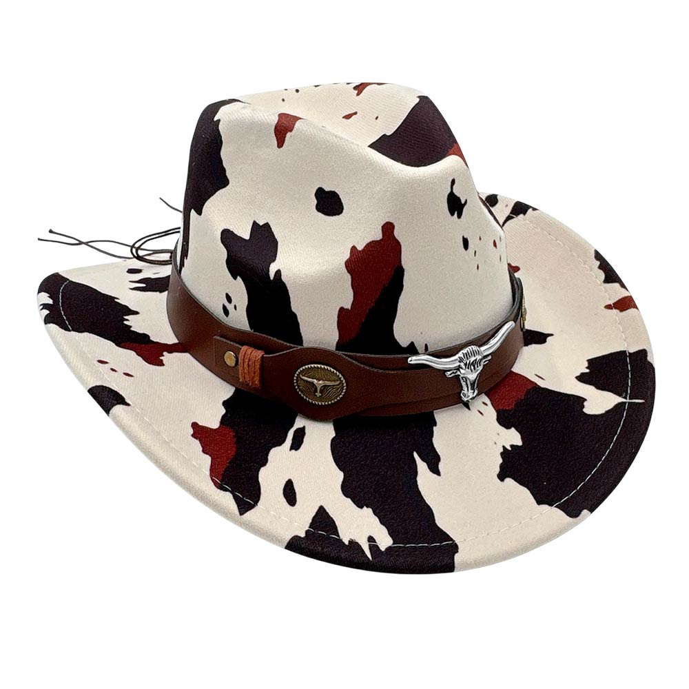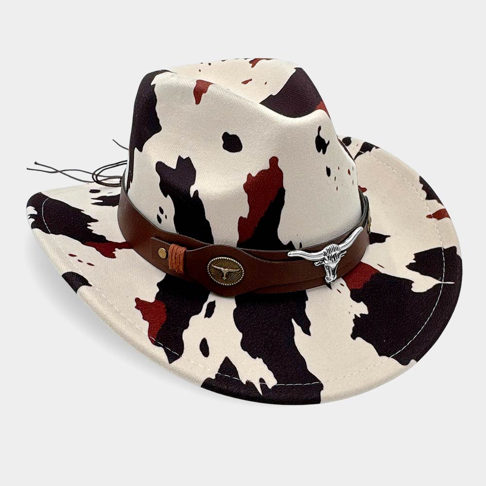 Steer Head Accent Faux Leather Band Cow Print Western Cowboy Hat Steer Head Accent Faux Leather Band Cow Print Western Cowboy Hat Steer Head Accent Faux Leather Band Cow Print Western Cowboy Hat
