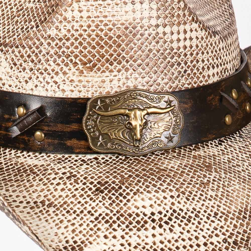 Vintage Cowboy Hat with Western Bull and Stud Faux Leather Band