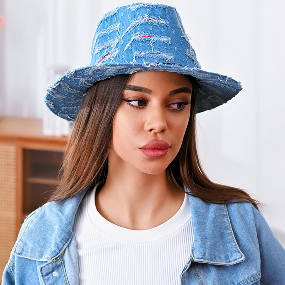 Details • Size : 13" X 11.5" • Material : 100% Cotton • Distressed design for a bold and fashionable look • Wide brim for sun protection and style • Lightweight and breathable for comfortable wear • Versatile accessory for casual and chic outfits • Perfect for streetwear, music festivals, and everyday styling