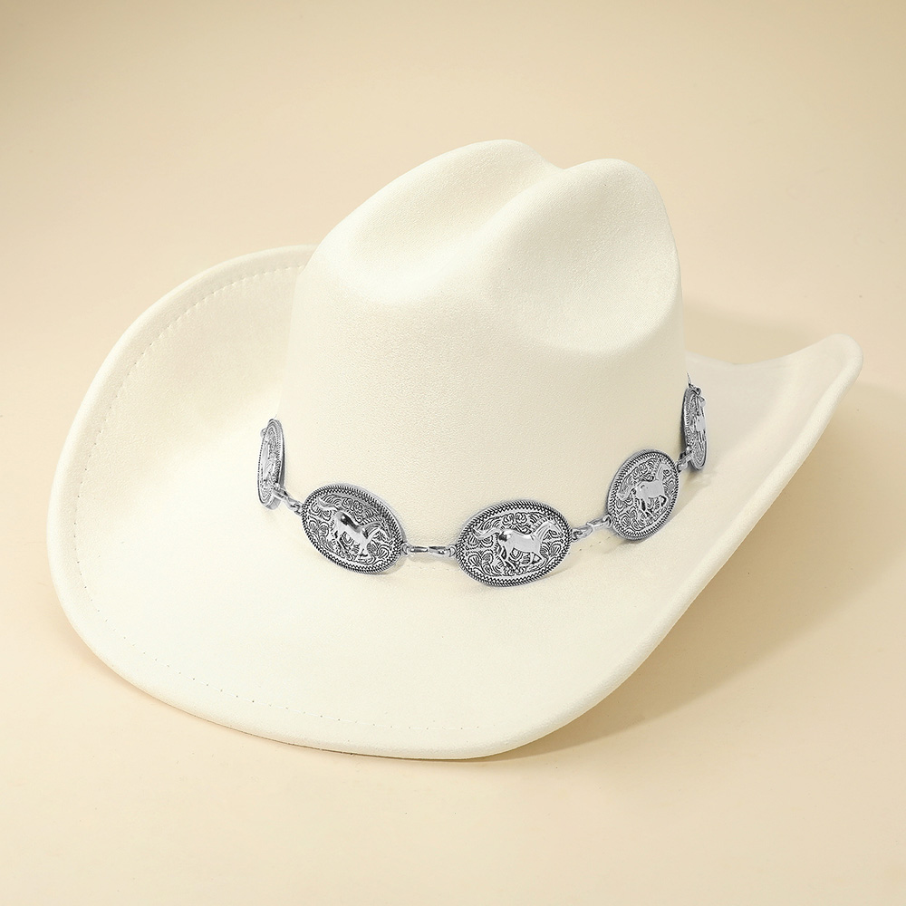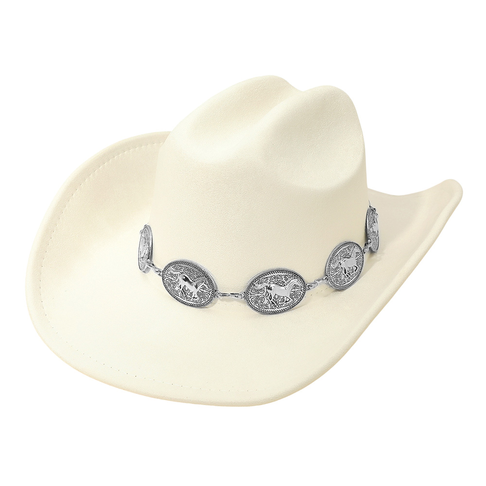 • Classic cowboy hat featuring an oval concho chain band with engraved rodeo-inspired details. Designed for rodeos, concerts, festivals, or everyday western wear, this bold hat brings authentic cowboy style with a durable design and striking concho accents for standout western fashion.