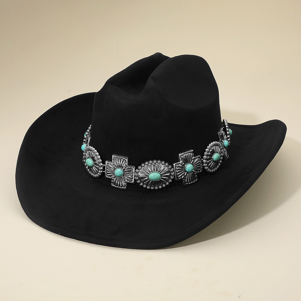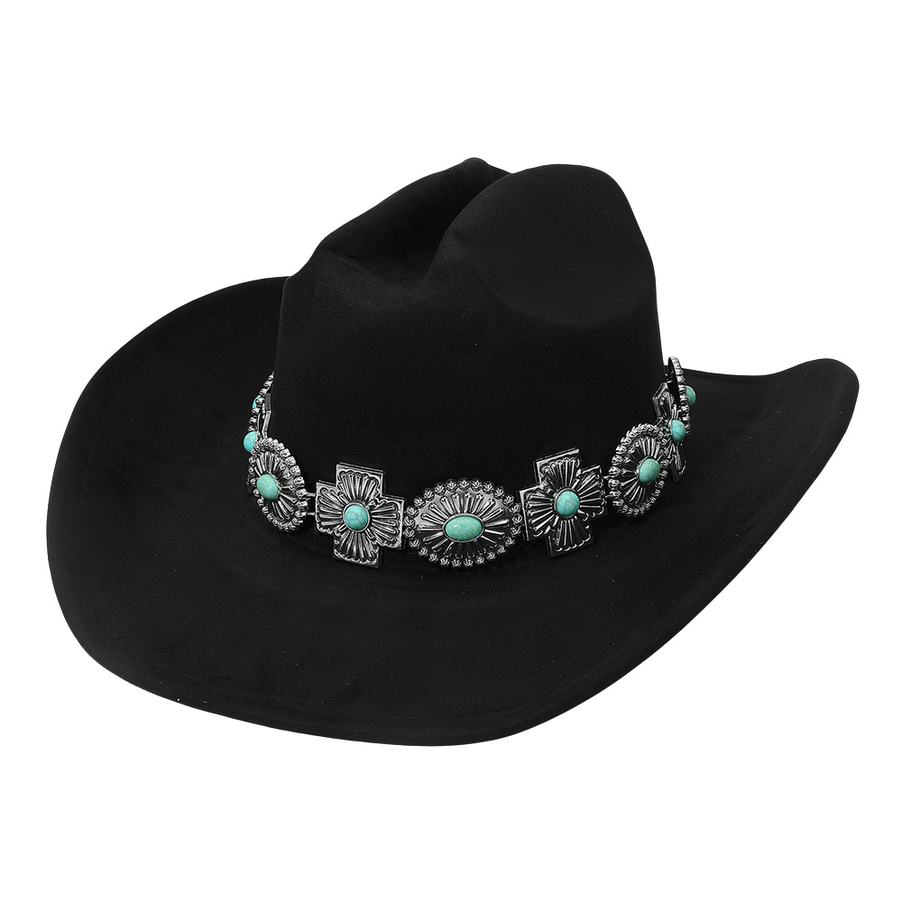 • Classic western cowboy hat designed with a detailed concho band that adds bold character and unique flair. Perfect for festivals, rodeos, or casual style, this hat blends timeless tradition with standout fashion appeal, making it a versatile accessory for any western-inspired look.