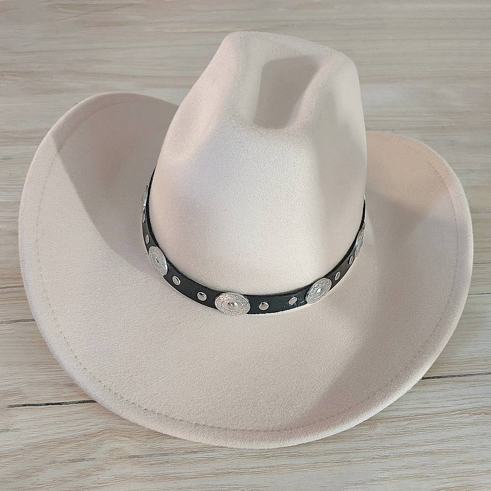Faux Leather Metal Concho Band Western Cowboy Hat