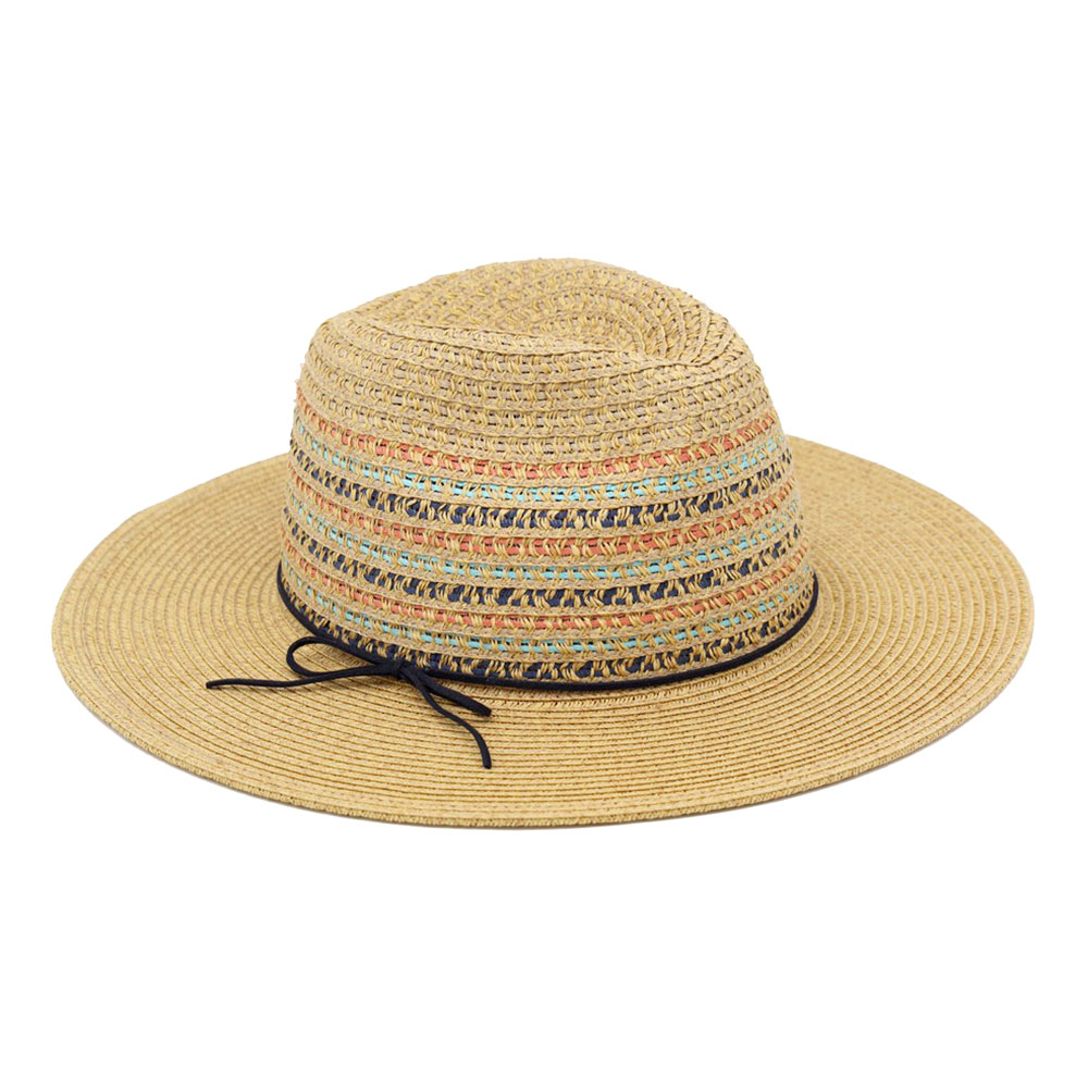 Details • Size : One Size • Material : 80% Paper, 20% Polyester • This wide brim woven sun hat features a structured crown with a decorative patterned band that adds visual interest without overpowering the design. Its balanced shape makes it ideal for everyday styling, travel, and resort wear. A versatile accessory that pairs easily with casual and seasonal outfits, offering strong retail appeal for boutiques seeking timeless yet eye-catching headwear.