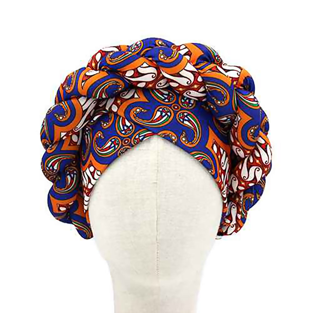 • This striking headwrap features a sculpted, voluminous design with an intricate all-over pattern that creates a standout look for any wardrobe. Its pre-formed structure offers effortless styling, making it ideal for expressive fashion statements, cultural events, or everyday elegance.