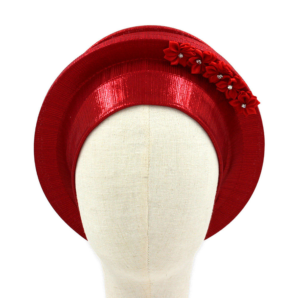 • This structured layered headwrap adds standout elegance with its sculpted silhouette and delicate floral accents. Designed for a polished, expressive look, it brings refined style to special events and everyday outfits, offering a bold yet graceful finishing touch that elevates any ensemble.