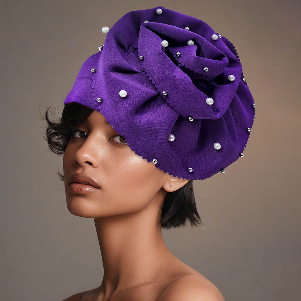 • Embellished statement turban headwrap designed to elevate formal and fashion-forward looks. This sculpted headwrap features decorative accents for a polished, high-impact finish, ideal for special events, evening wear, photoshoots, and boutique accessories collections. Lightweight, comfortable, and eye-catching, it offers a refined alternative to traditional headwear while adding dramatic style appeal.