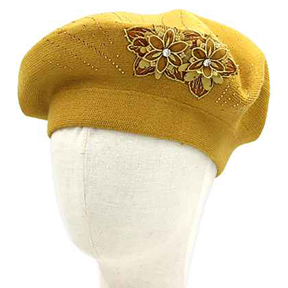 Floral Applique Accent Winter Beret Hat Floral Applique Accent Winter Beret Hat Floral Applique Accent Winter Beret Hat