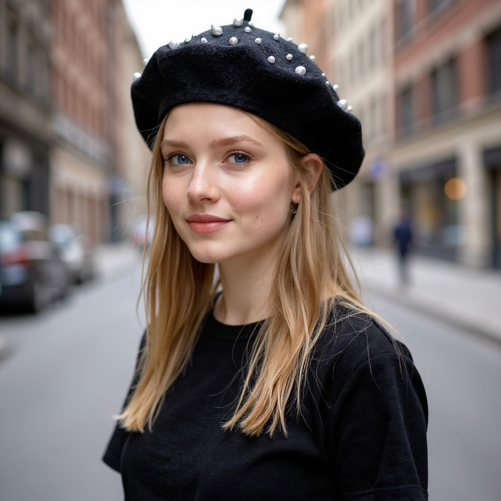 Details • Size : One Size • Material : 50% Wool, 50% Acrylic • Elegant beret hat adorned with stylish embellishments that add charm and sophistication to any outfit. Perfect for enhancing seasonal looks, this fashionable accessory offers a chic touch and makes a trendy addition to both casual and dressy wardrobes.