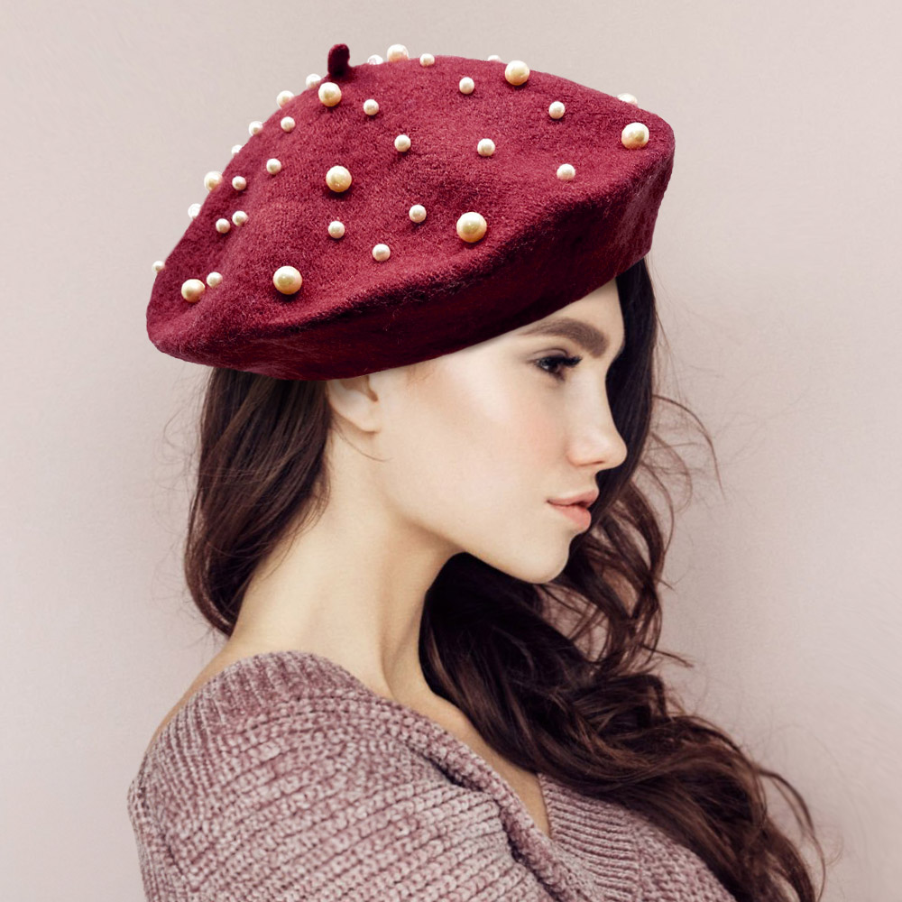 Pearl Embellished Tam Beret Hat Pearl Embellished Tam Beret Hat
