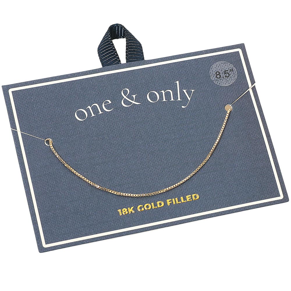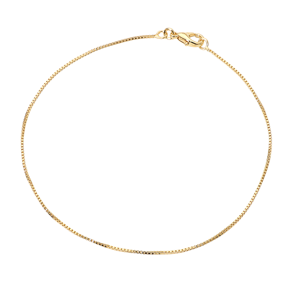 Details • Size : 0.1" H, 8.5" L • Lobster Clasp Closure • Chic box chain anklet with a smooth, polished finish for a refined and timeless look. Perfect for layering or wearing solo, this elegant design adds a subtle shimmer and touch of sophistication to your everyday and dressy outfits. • Lead and Nickel Compliant • Gold Filled • Made In Brazil