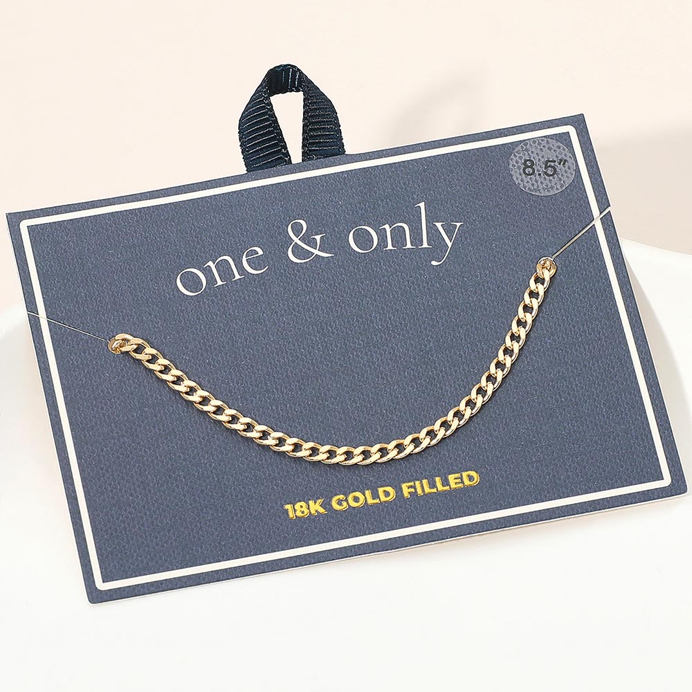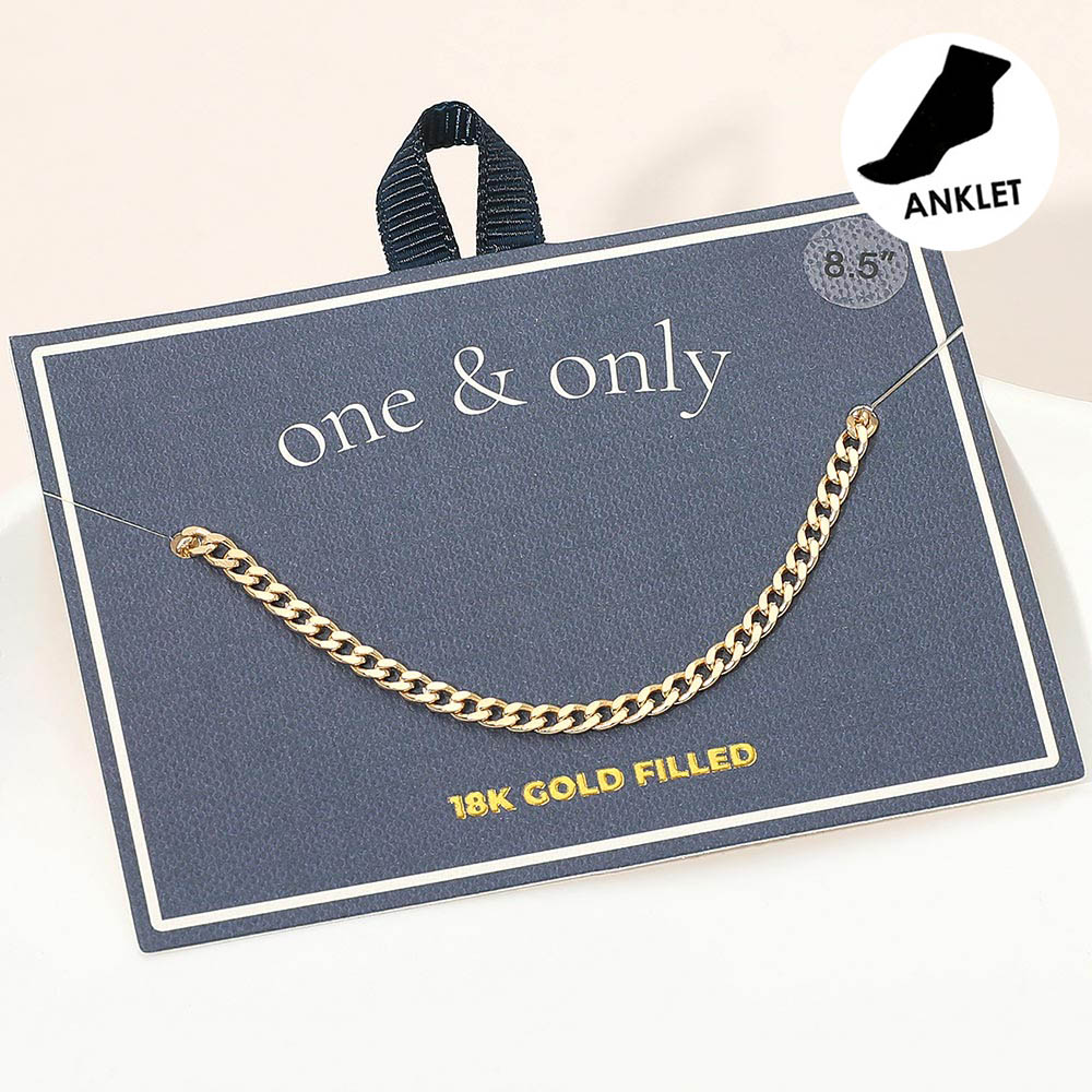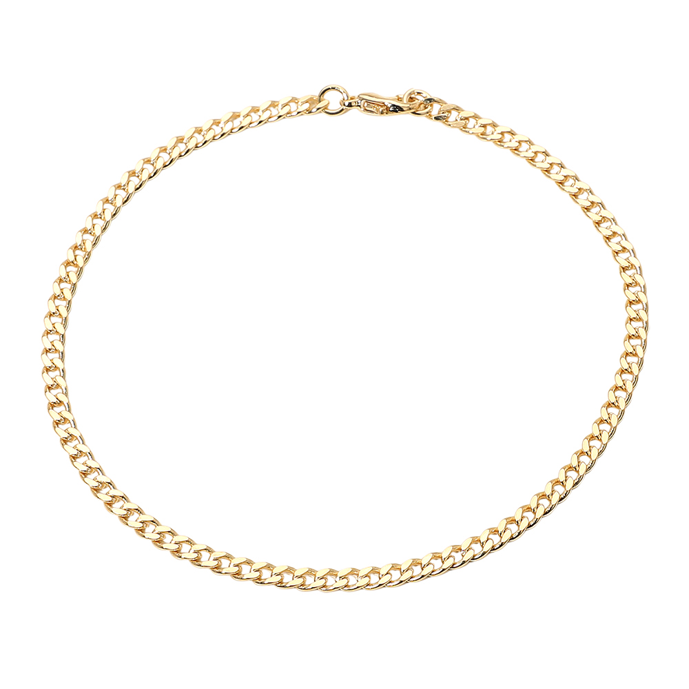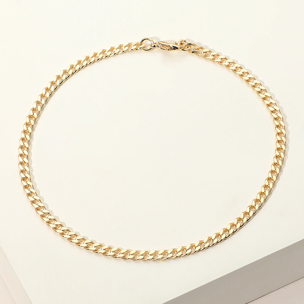 Details • Size : 0.1" H (3mm), 8.5" L • Lobster Clasp • Timeless Cuban chain anklet featuring smooth flat links with a sleek polished shine. Its classic design offers effortless sophistication, perfect for daily wear or layering with other pieces. A versatile accessory that adds a refined touch to any modern or classic look. • Lead and Nickel Compliant • Gold Filled • Made In Brazil