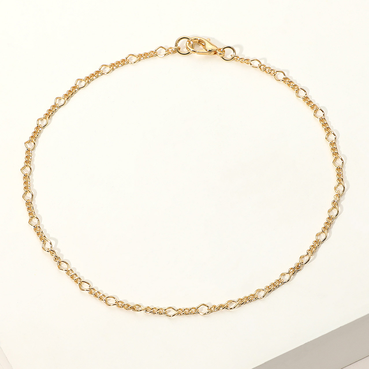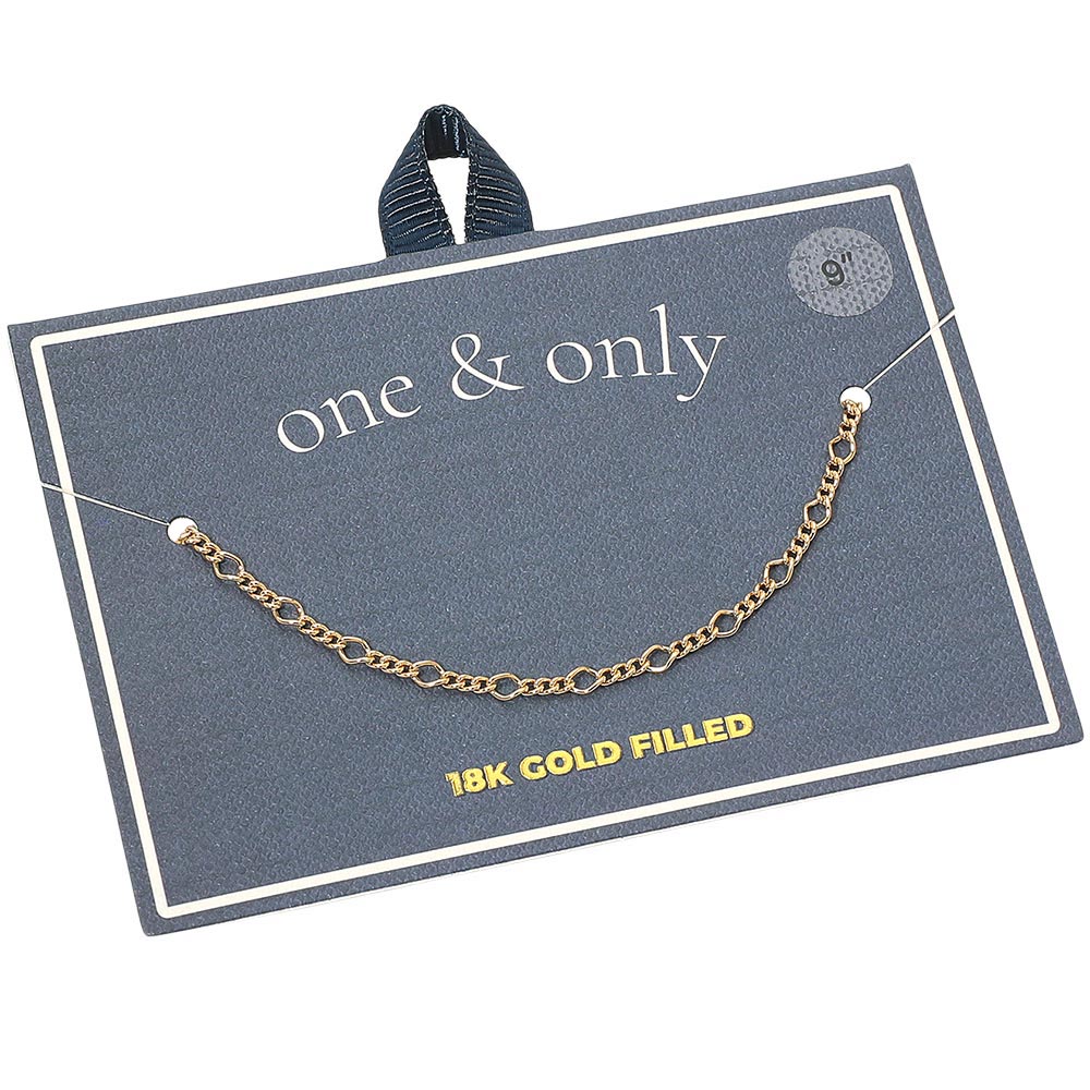 Details • Size : 0.1" H (2mm), 9" L • Lobster Clasp Closure • Delicate anklet featuring a unique twisted circle link pattern that adds subtle texture and shine. Perfect for everyday elegance, this 18K gold-filled design brings a refined, modern charm—ideal for layering or wearing alone for a simple, polished look. • Gold Filled • Lead and Nickel Compliant • Made In Brazil