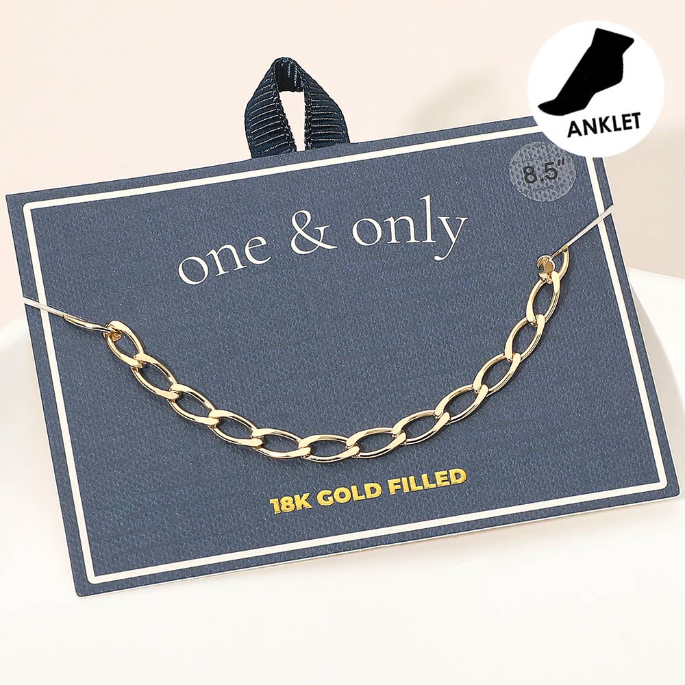 Details • Size : 0.25" H (4mm), 8.5" L • Lobster Clasp Closure • Elegant oval link anklet featuring smooth, polished links for a modern and versatile look. Crafted with 18K gold-filled finish, this lightweight piece adds a touch of sophistication to any outfit—perfect for layering or wearing solo for a minimalist style statement. • Gold Filled • Lead and Nickel Compliant • Made In Brazil