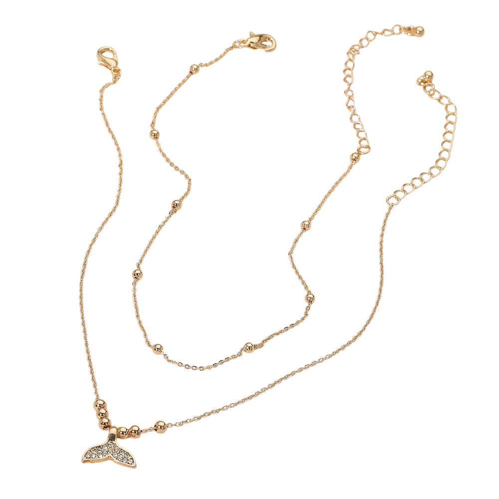 2PCS - Stone Paved Whale Tail Pointed Metal Ball Station Chain Anklets