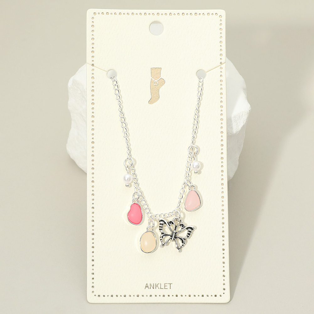 Details • Size : 0.7" H, 9.25" + 1.75" L • Lobster Clasp Closure • Butterfly charm anklet featuring delicate dangling accents and a graceful winged design that symbolizes freedom and joy. Designed to add subtle movement and a playful touch to ankle styling for everyday wear or vacations. Ideal for gifting or boutique collections inspired by nature and feminine fashion. • Lead and Nickel Compliant