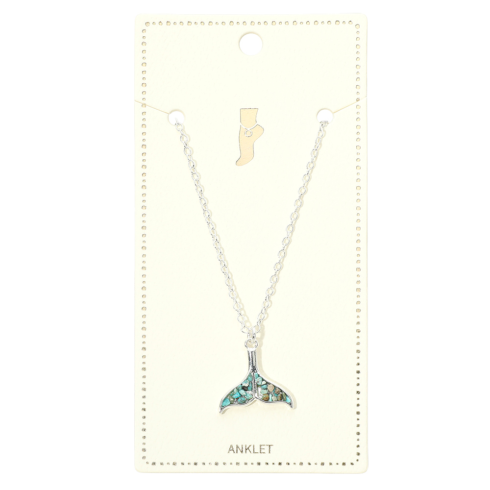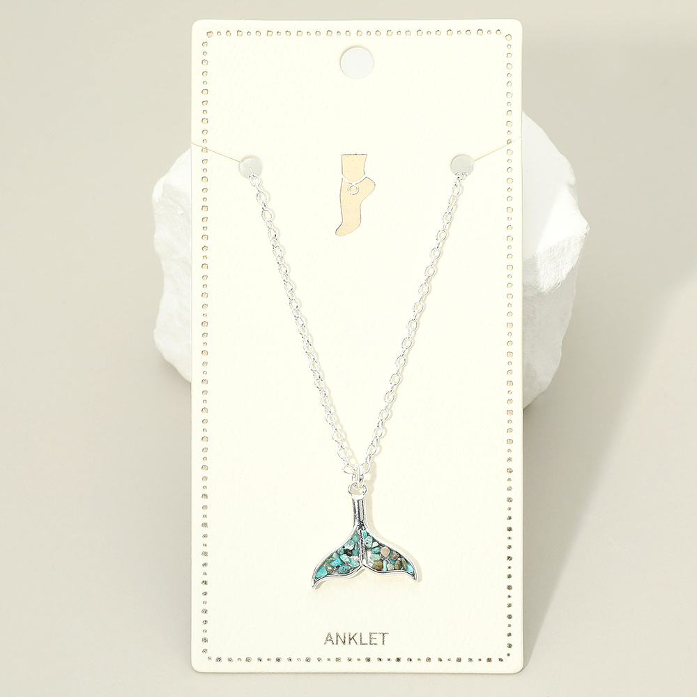Details • Size : 9" + 1.5" L • Charm Size : 0.75" X 0.75" • Lobster Clasp Closure • Crushed pebble whale tail charm anklet designed with a detailed ocean-inspired pendant that adds whimsical seaside appeal to ankle styling. Lightweight and comfortable for all-day wear, this anklet is perfect for summer outfits, beach vacations, resort looks, and coastal-themed boutique jewelry collections. • Lead and Nickel Compliant