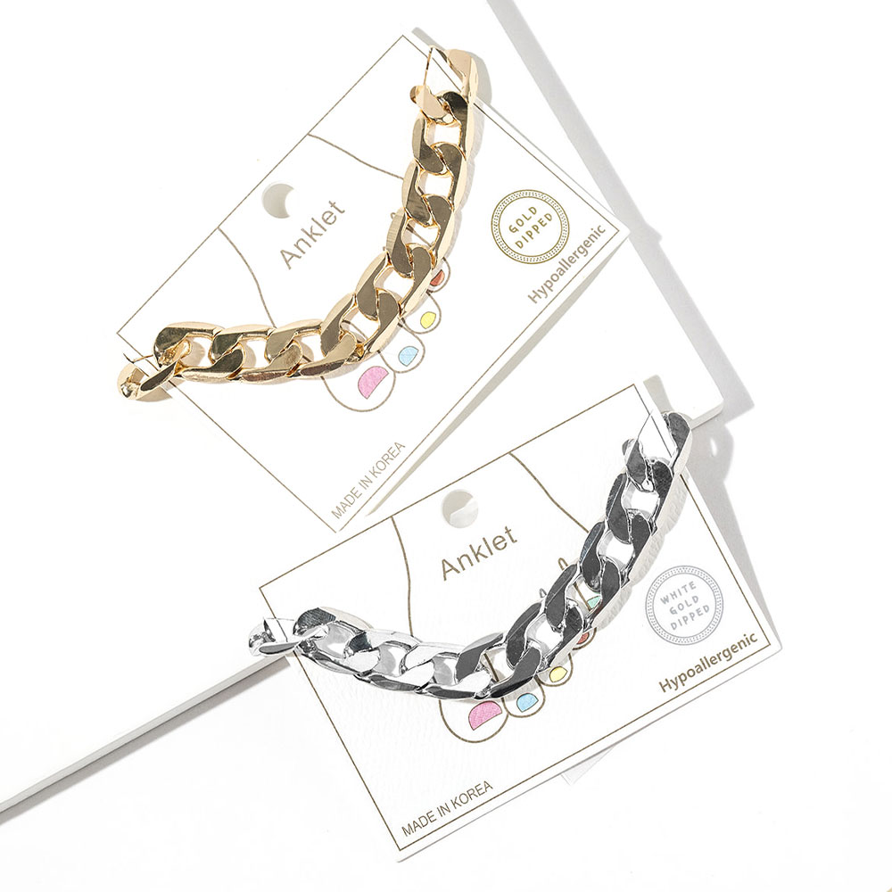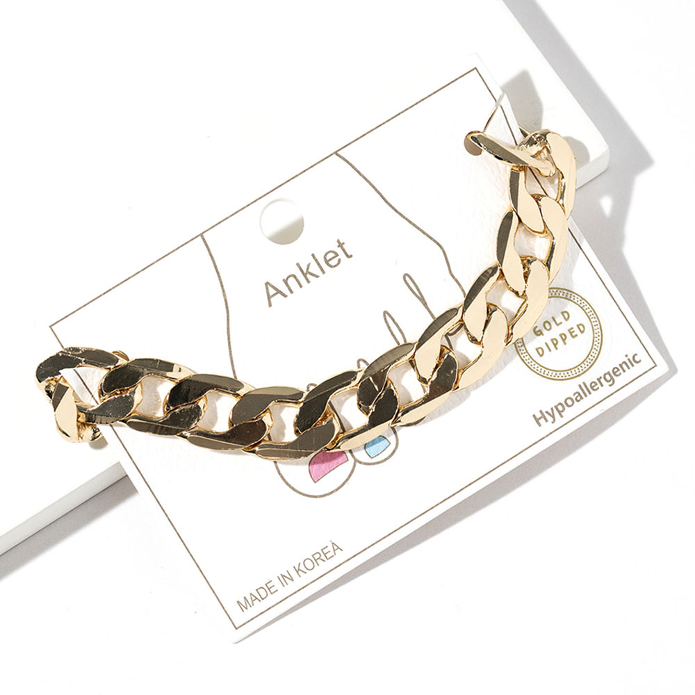 • Bold chunky link anklet designed to make a confident statement with a sleek, modern silhouette. This ankle bracelet adds effortless edge to everyday outfits, beach looks, or layered accessory styling, making it a versatile choice for trend-forward collections, boutiques, and seasonal fashion assortments.