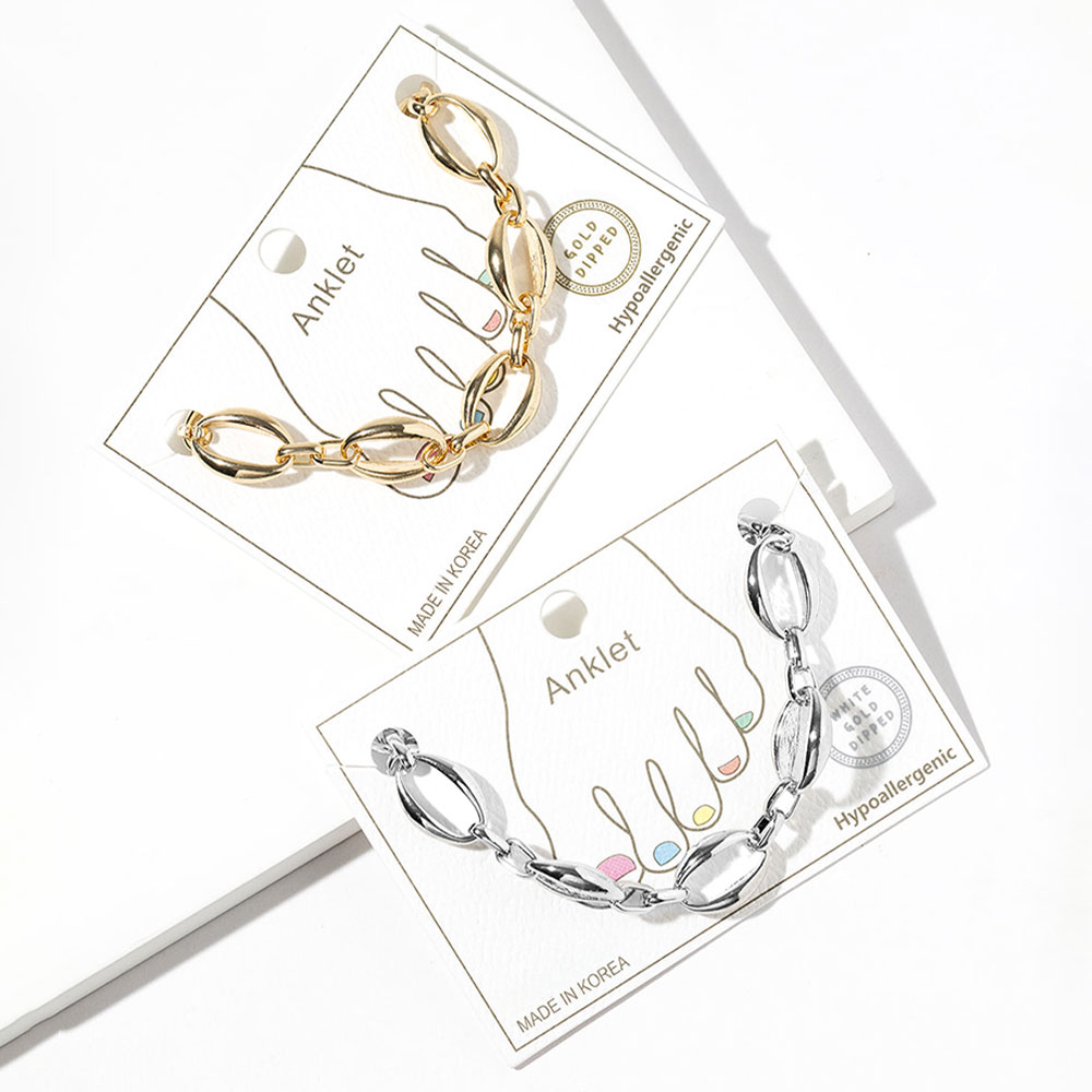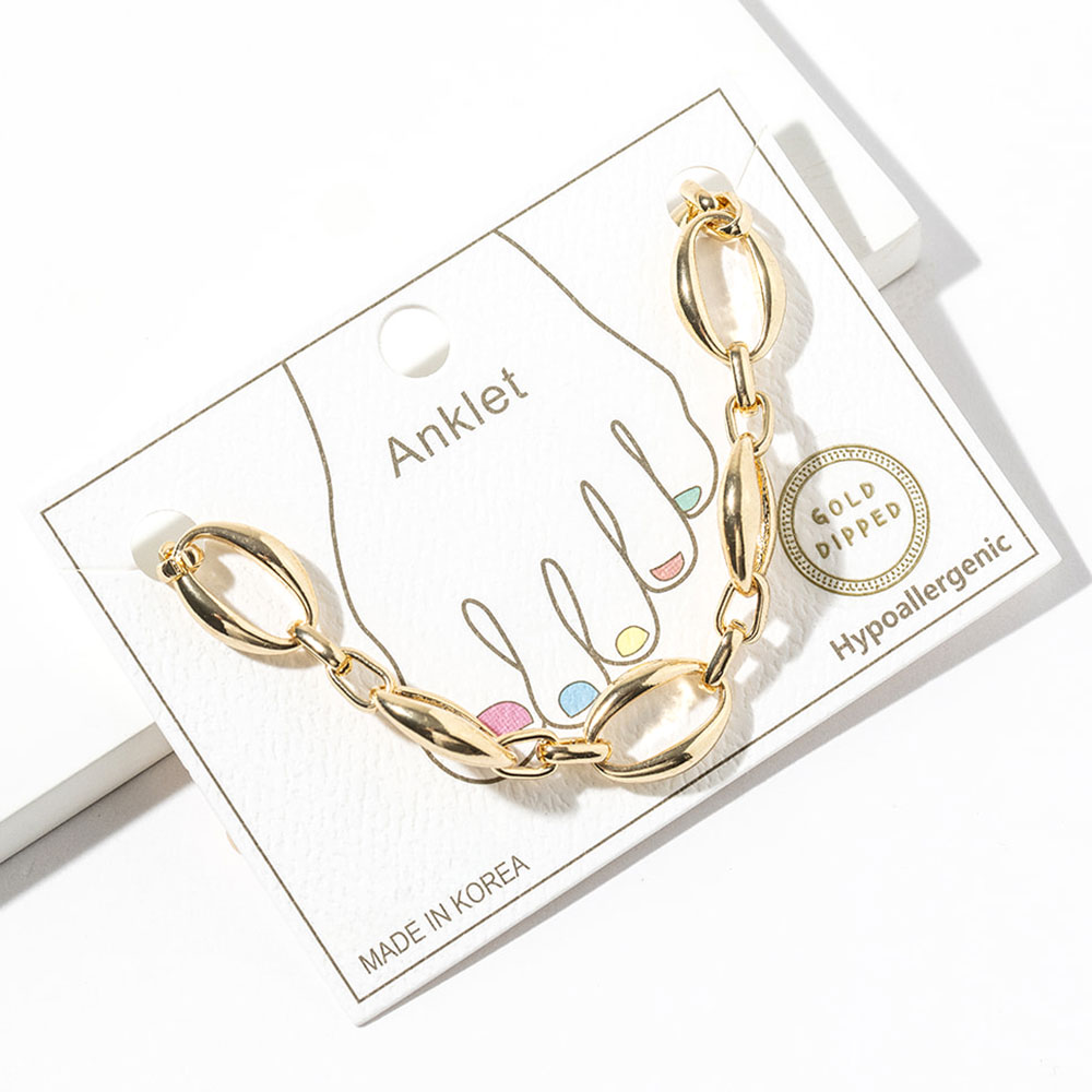 • Modern oval link anklet designed to add a bold yet polished accent to everyday styling. This chain ankle bracelet features smooth, elongated links that create a clean statement look, perfect for pairing with sandals, flats, or layered ankle jewelry. Ideal for casual wear, vacations, and trend-forward collections.