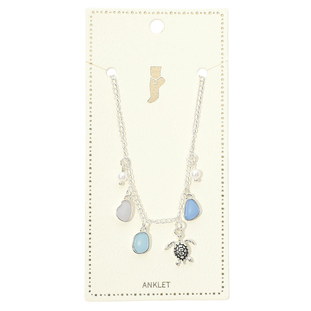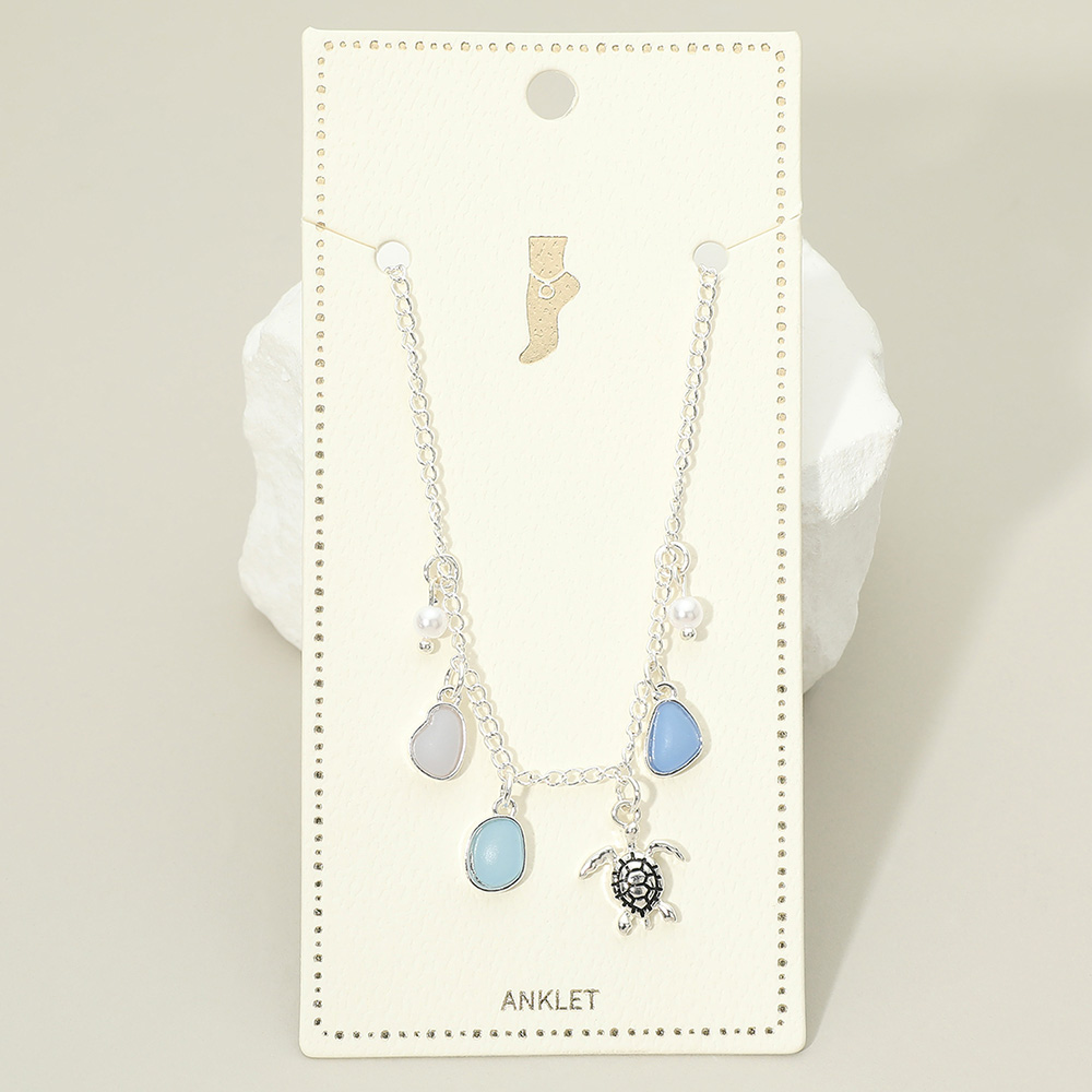Details • Size : 0.6" H, 9.25" + 1.75" L • Lobster Clasp Closure • Sea turtle charm anklet featuring delicate dangling accents that create a relaxed, ocean-inspired look. Designed to highlight the ankle with subtle movement and charm, perfect for everyday wear or vacation styling. Ideal for gifting or boutique collections focused on coastal and nature-themed fashion jewelry. • Lead and Nickel Compliant