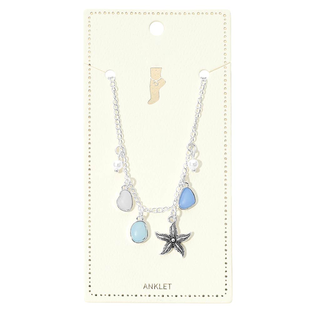Details • Size : 0.75" H, 9.25" + 1.75" L • Lobster Clasp Closure • Starfish charm anklet featuring delicate dangling accents that create a relaxed, beach-inspired look. Designed to add subtle movement and charm to ankle styling for everyday wear or vacations. Ideal for gifting or boutique collections focused on coastal, ocean, and nature-themed fashion jewelry. • Lead and Nickel Compliant