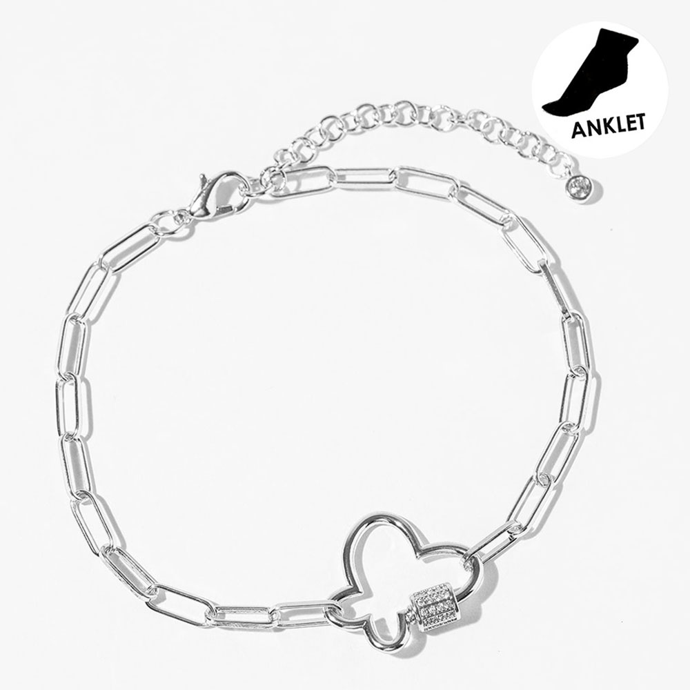 • Stylish butterfly lock anklet designed with a sleek link chain and a delicate sparkling cz accent for a modern, romantic touch. This ankle bracelet offers a chic balance of trend and elegance, perfect for everyday wear, layering with other anklets, or enhancing seasonal and boutique accessory collections.