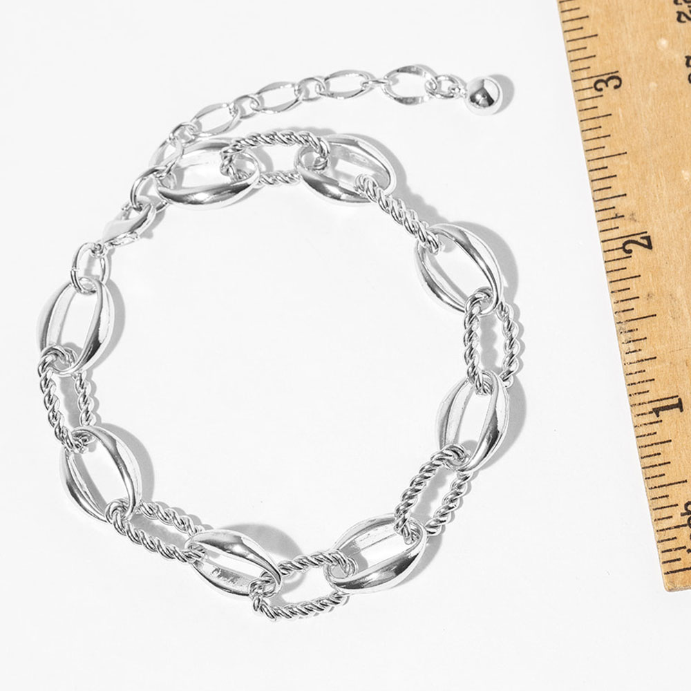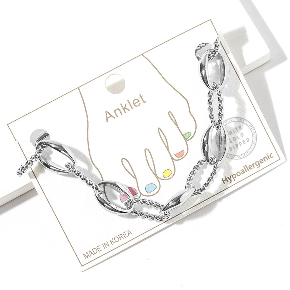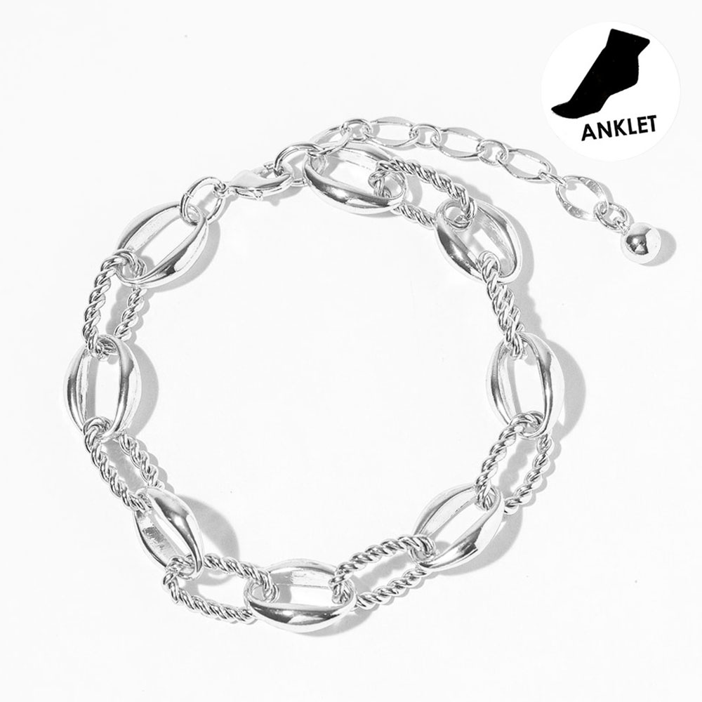 Details • Size : 0.3" H, 8.5" + 2.5" L • Lobster Clasp Closure • Stylish mixed-link anklet designed to elevate everyday and vacation looks. Featuring a bold combination of smooth and twisted links, this ankle bracelet adds eye-catching texture and movement. Ideal for layering or wearing solo, it pairs effortlessly with sandals, flats, or heels for a modern, fashion-forward finish. • Gold Dipped • Made In Korea