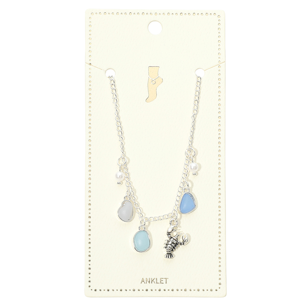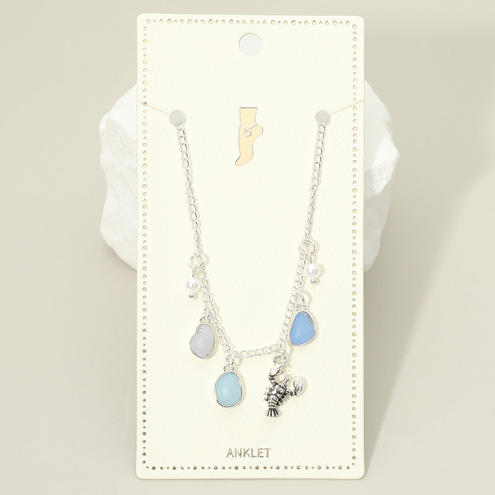 Lobster Sea Glass Pearl Charm Station Anklet Lobster Sea Glass Pearl Charm Station Anklet Lobster Sea Glass Pearl Charm Station Anklet