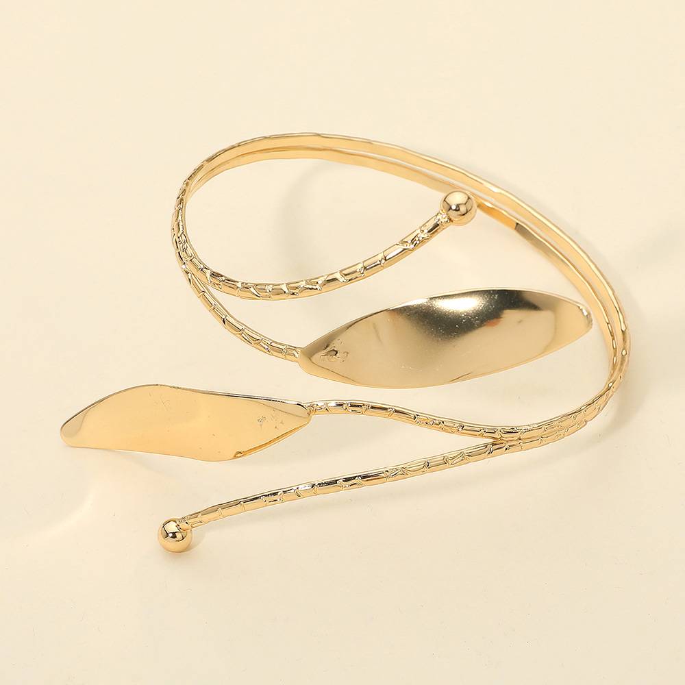 Details • Size : 2.25" H • Adjustable / Cuff • Make a bold statement with this elongated accent adjustable arm cuff, crafted with flowing lines and sleek detailing for a contemporary edge. Lightweight and versatile, it enhances evening outfits, festivals, or parties with a touch of modern artistry. • Lead and Nickel Compliant